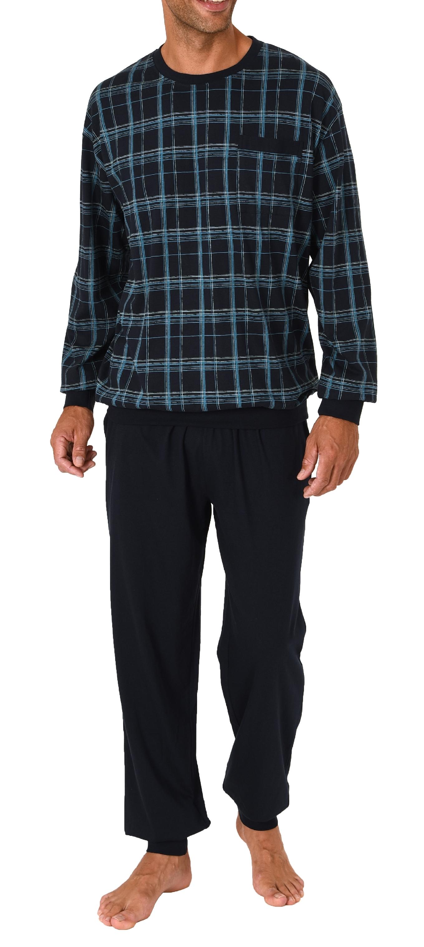 Herren Pyjama langarm Schlafanzug mit Bündchen in Karo Optik - auch in Übergrößen - 222 101 90 502