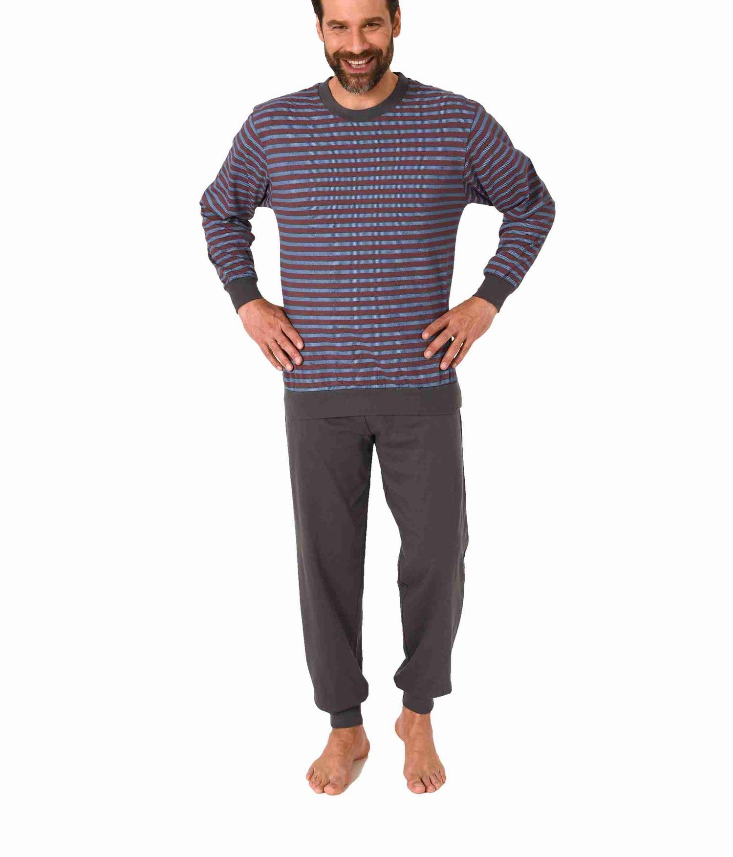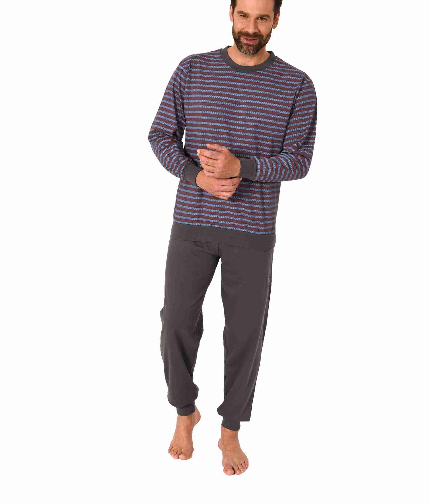 Herren Schlafanzug langarm Pyjama mit Bündchen in edler Streifenoptik - 122 101 10 873