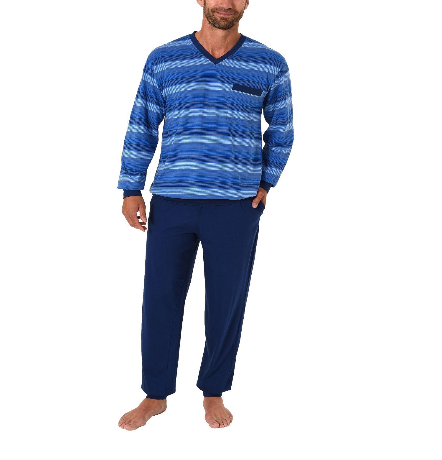 Herren Schlafanzug langarm Pyjama mit Bündchen in Streifenoptik – 181 101 90 508