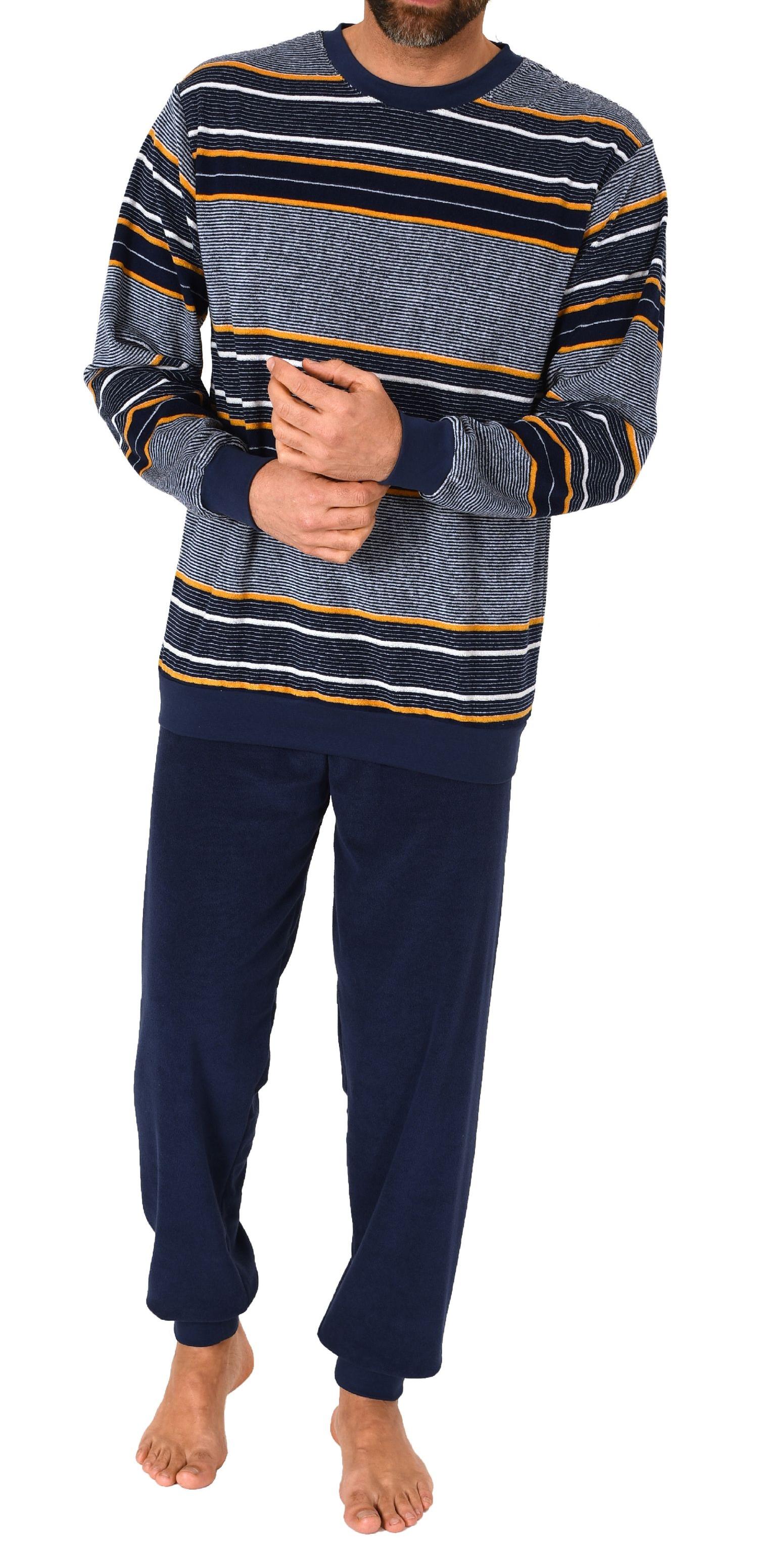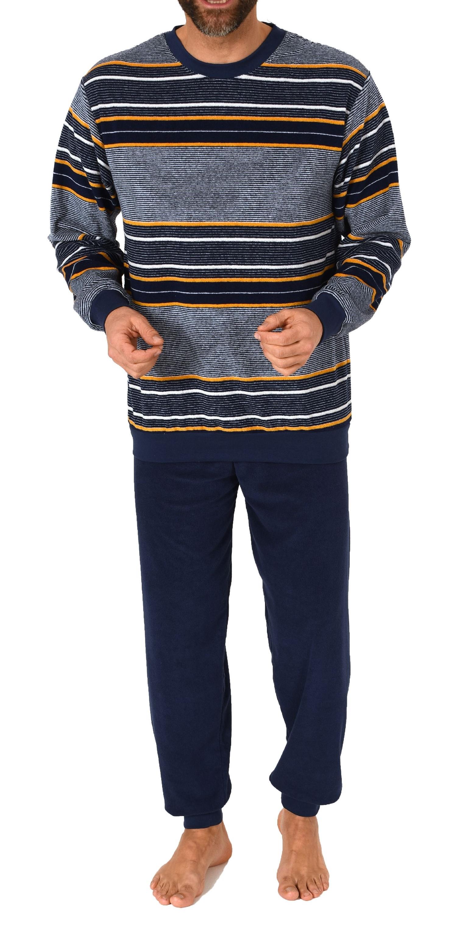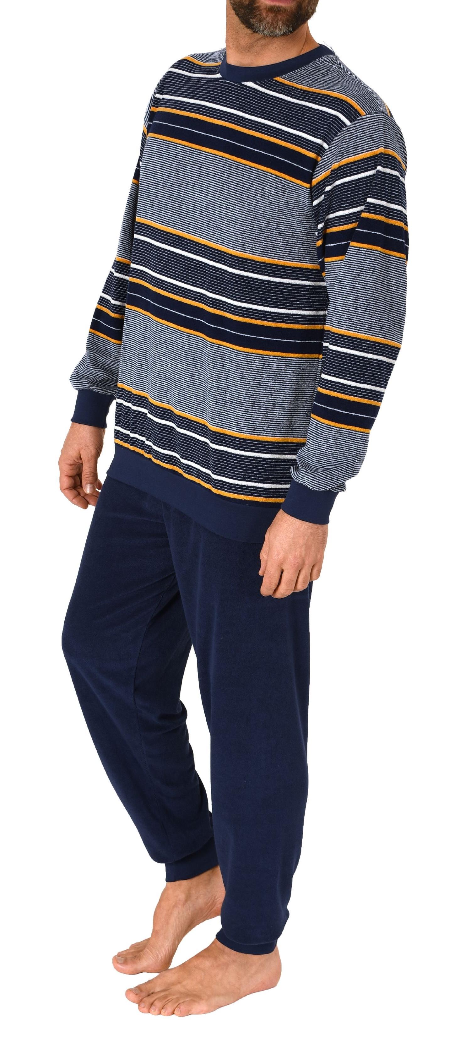 Herren Schlafanzug mit Bündchen in Frottee Qualität - auch in Übergrössen - Streifenoptik