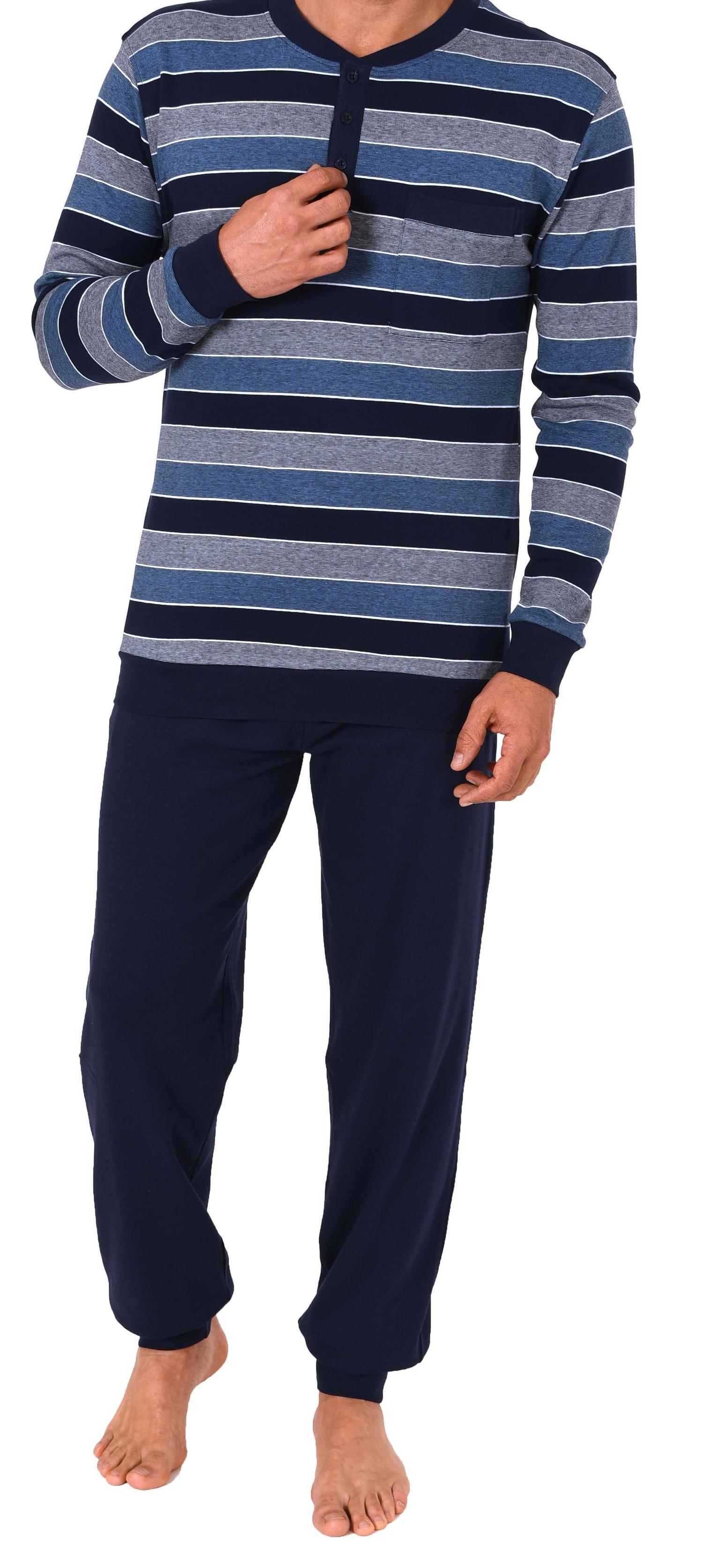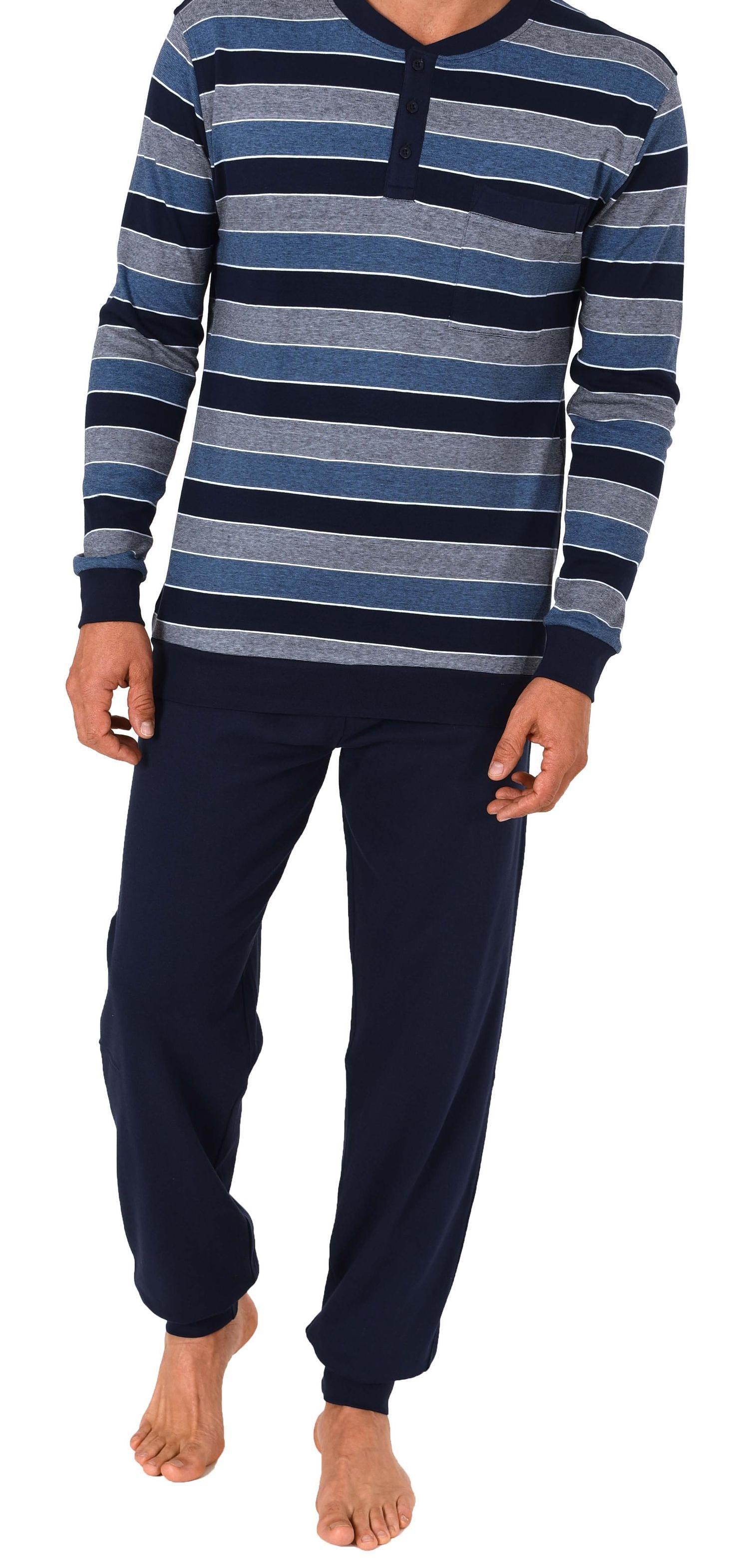 Herren Schlafanzug mit Bündchen in warmer Kuschel Interlock Qualität - auch in Übergrössen