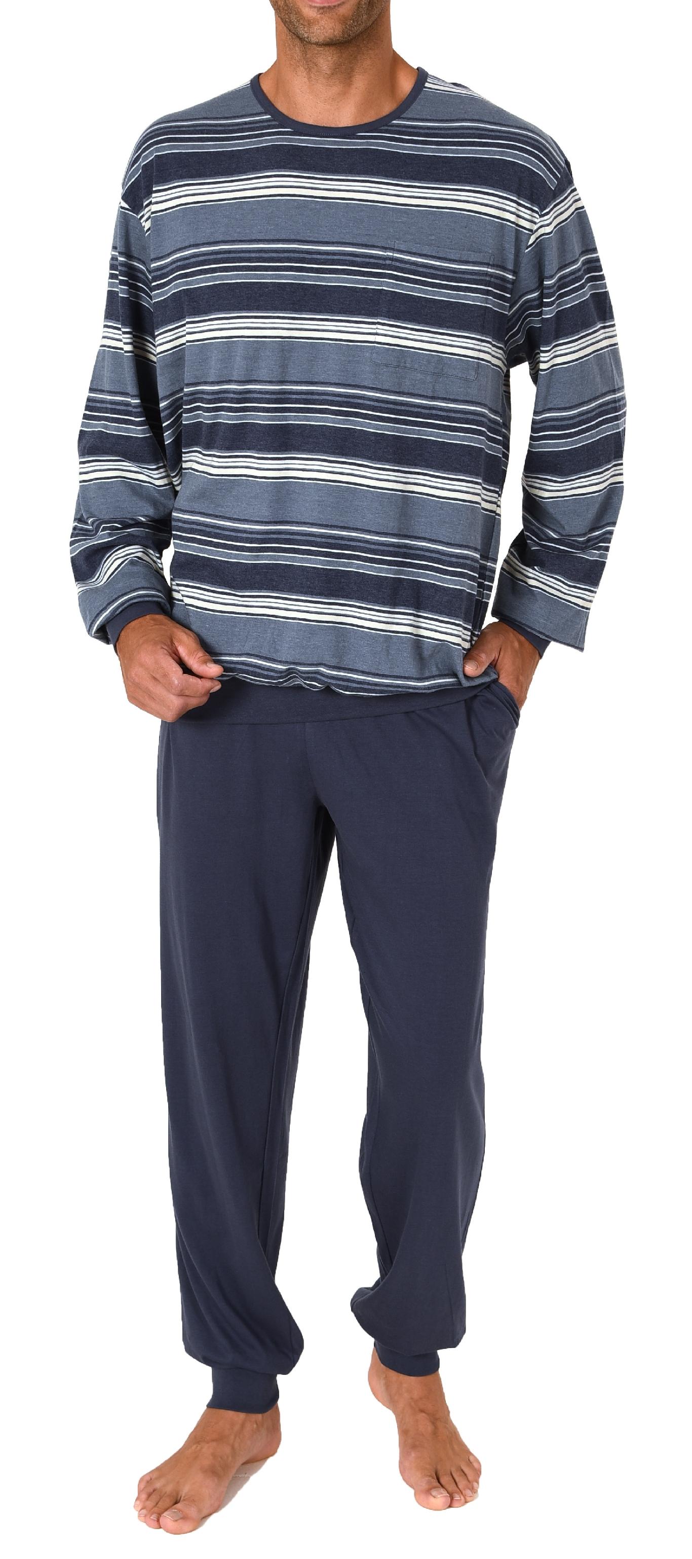 Herren Schlafanzug Pyjama langarm mit Bündchen in eleganter Streifenoptik - 222 101 90 820