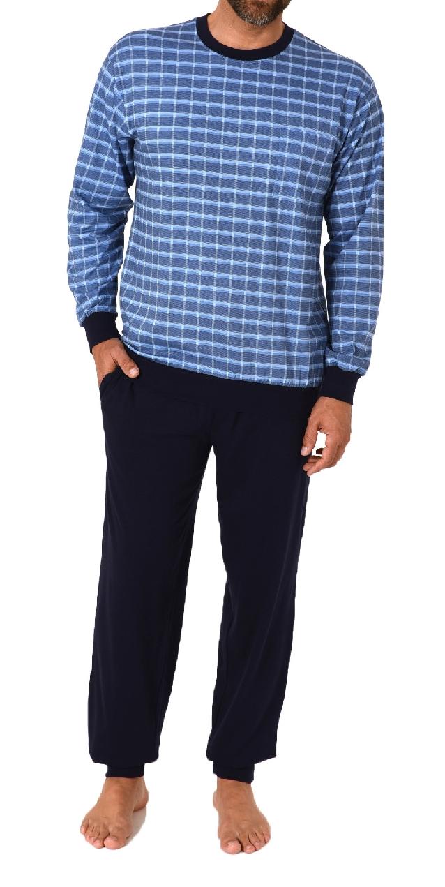 Herren Pyjama Schlafanzug langarm mit Bündchen in edler Karo Optik - auch in Übergrössen - 122 101 90 502