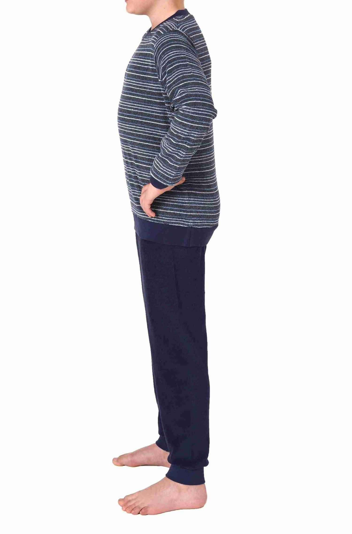 Jungen langarm Frottee Schlafanzug Pyjama mit Bündchen in Streifenoptik