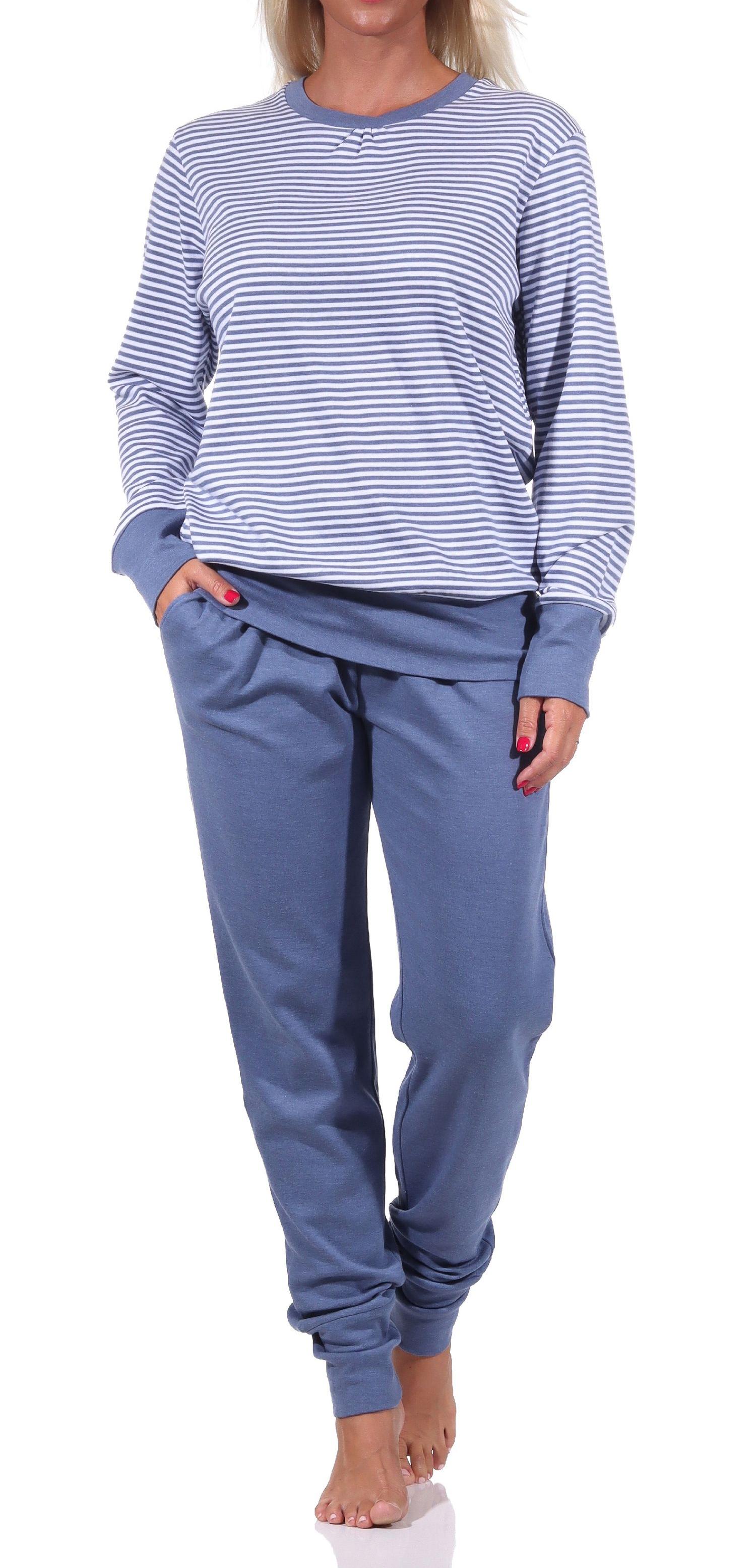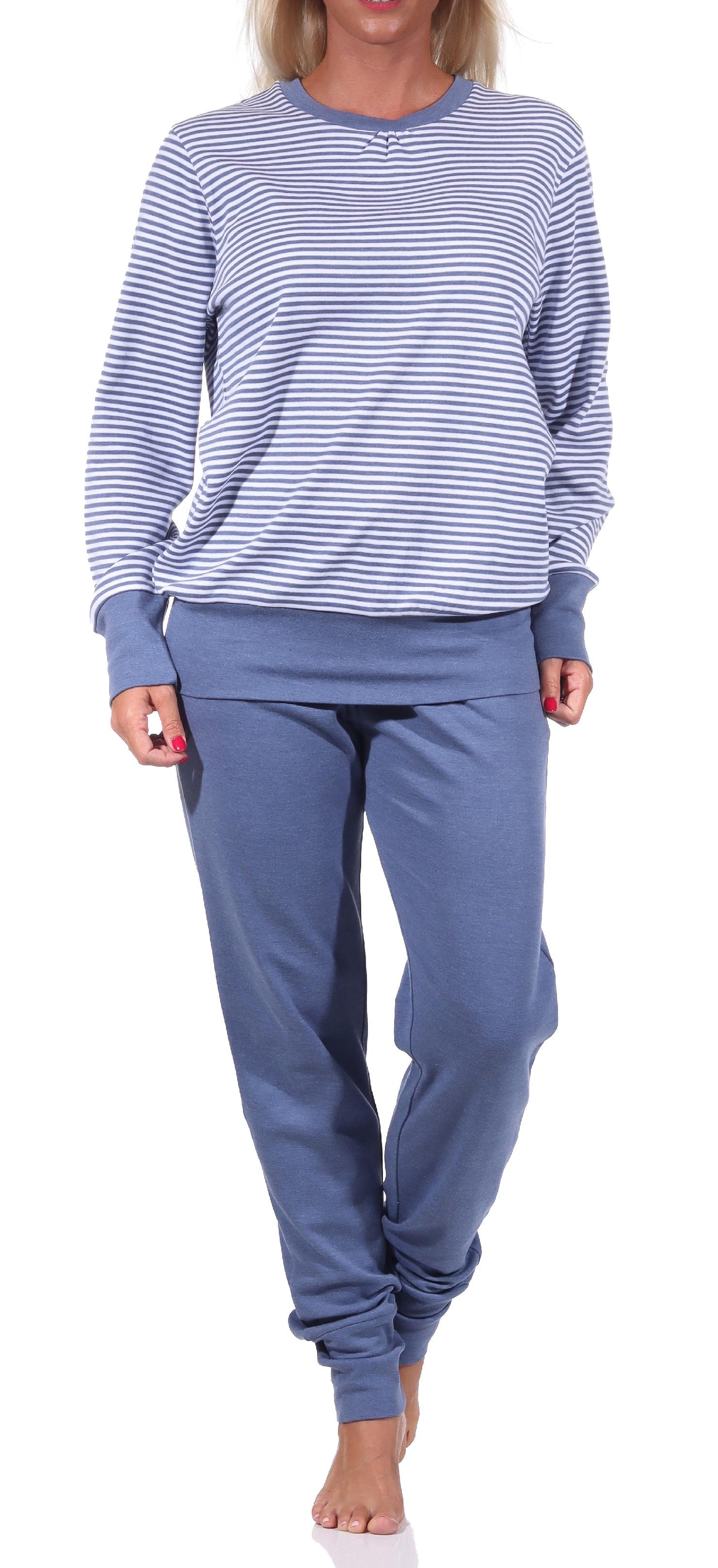 Kuscheliger Damen Pyjama langarm Schlafanzug mit Bündchen in Streifenoptik - 212 96 258