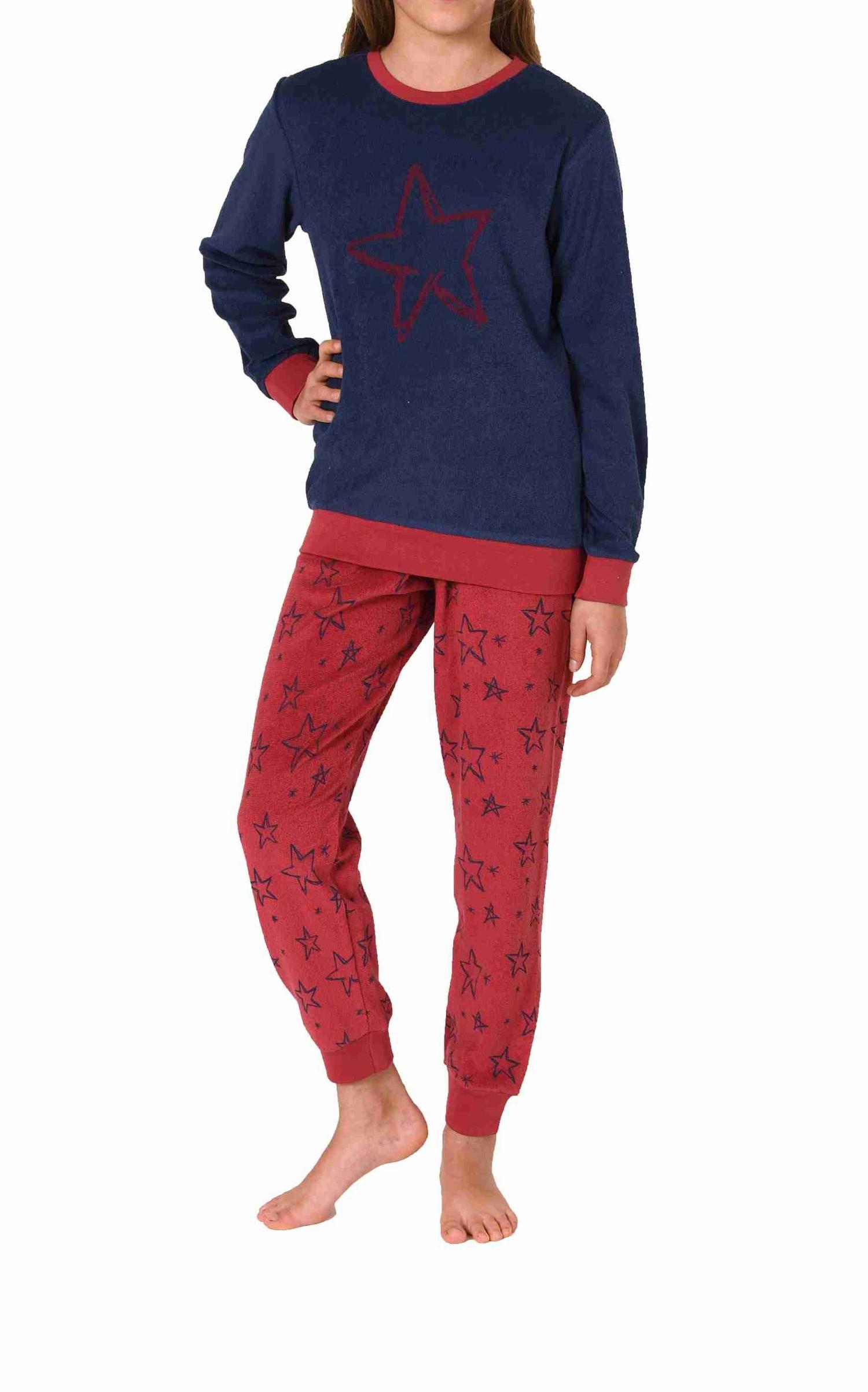 Kuscheliger Mädchen Frottee Schlafanzug langarm mit Bündchen in toller Sterne Optik