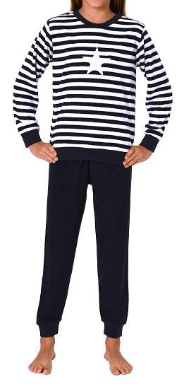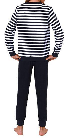Mit diesem Mädchen Frottee Pyjama von Normann bleiben keine Wünsche offen. Der wunderbar weiche Frottee Stoff eignet sich perfekt für die kühle und kalte Jahreszeit und macht dem Frieren ein Ende. Trotzdem ist der Stoff atmungsaktiv und elastisch. Die tolle Optik macht diesen Mädchen Pyjama zu etwas ganz Besonderem. Ein breiter Ringel kombiniert mit dem Stern-Motiv ist zeitlos und ein echter Hingucker!