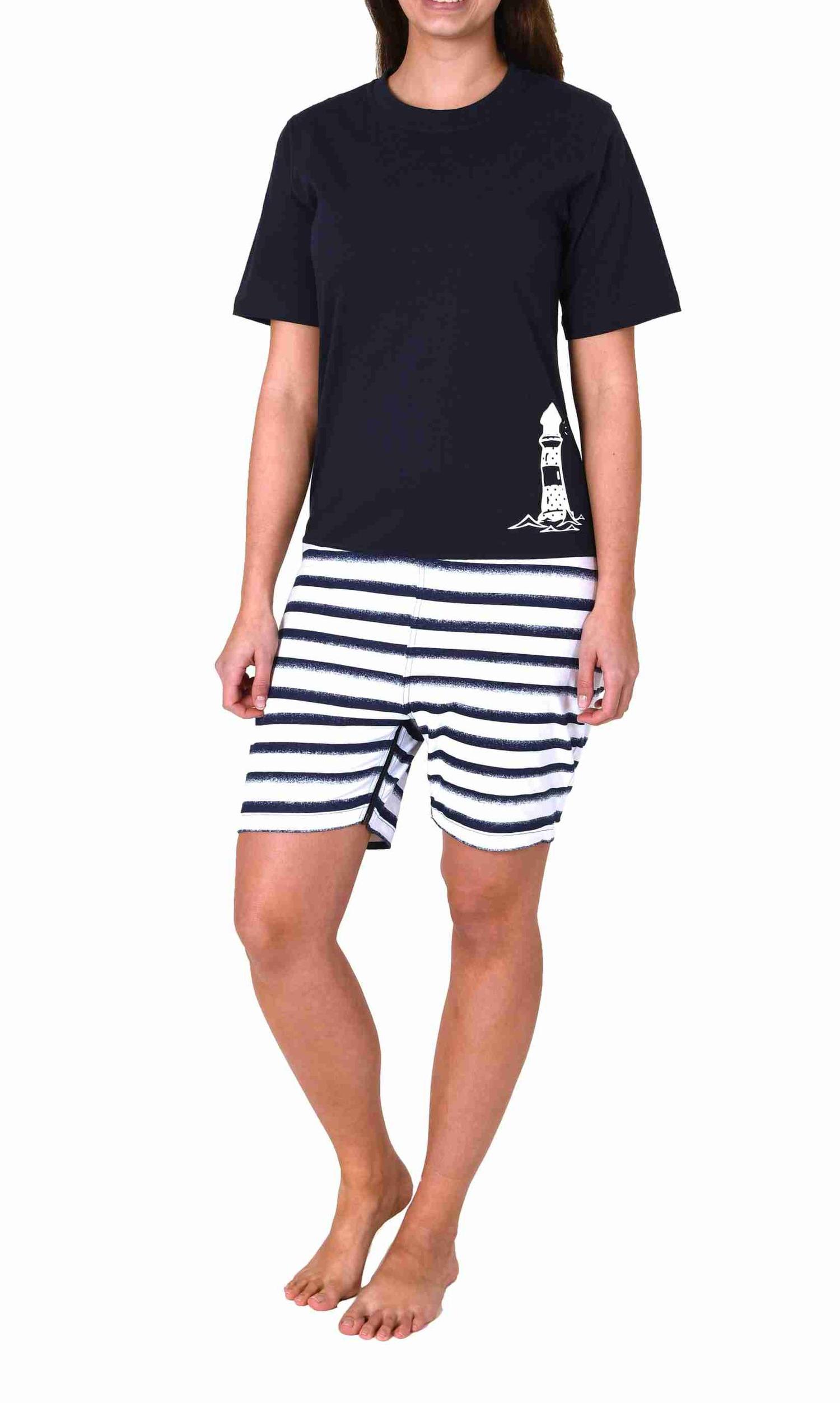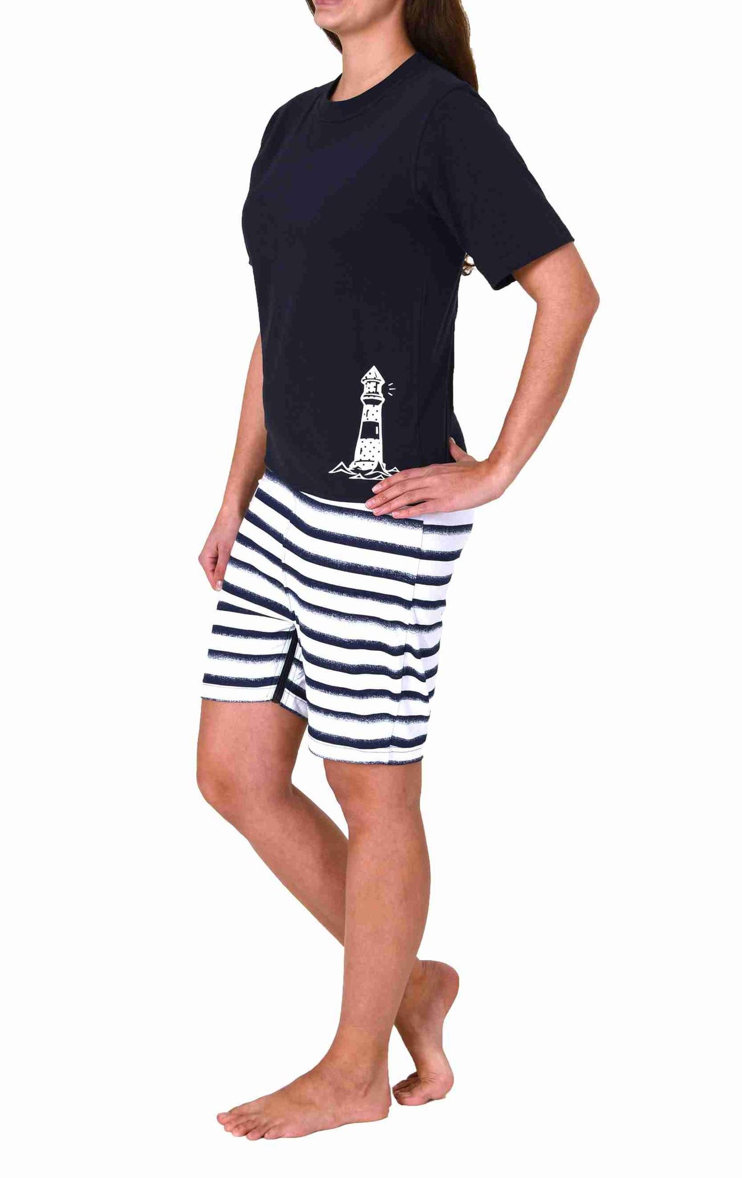 Maritimer Damen Pflegeoverall kurzarm Schlafanzug mit Reissverschluss am Rücken und Bein
