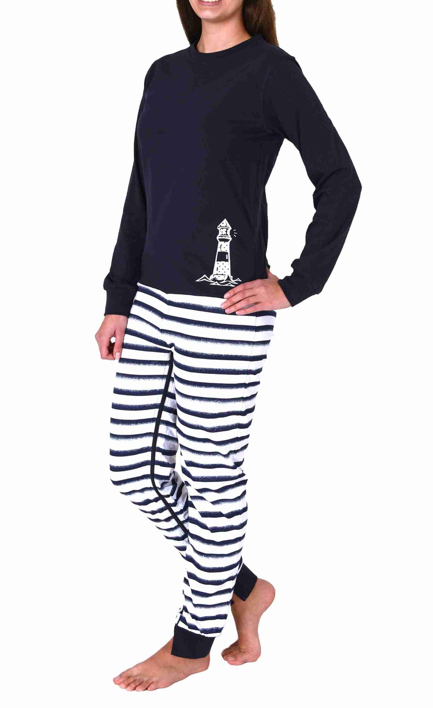 Maritimer Damen Pflegeoverall langarm Schlafanzug mit Reissverschluss am Rücken und Bein