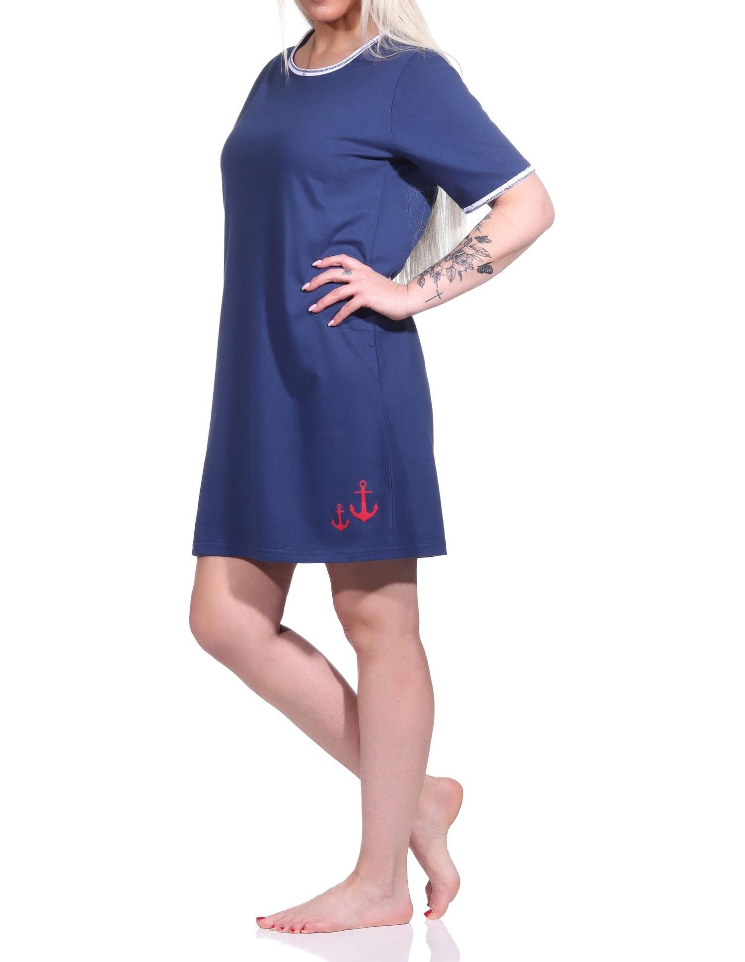 Maritimes Damen Nachthemd, kurzärmliges Bigshirt mit Rundhals - 123 214 10 151