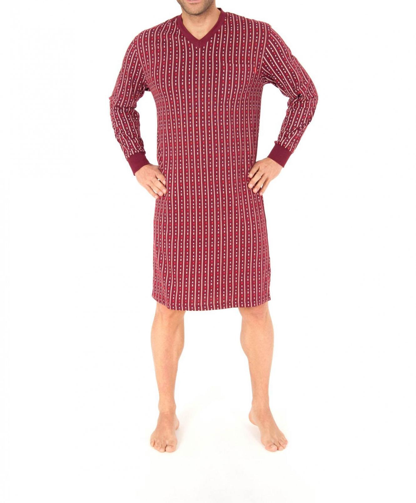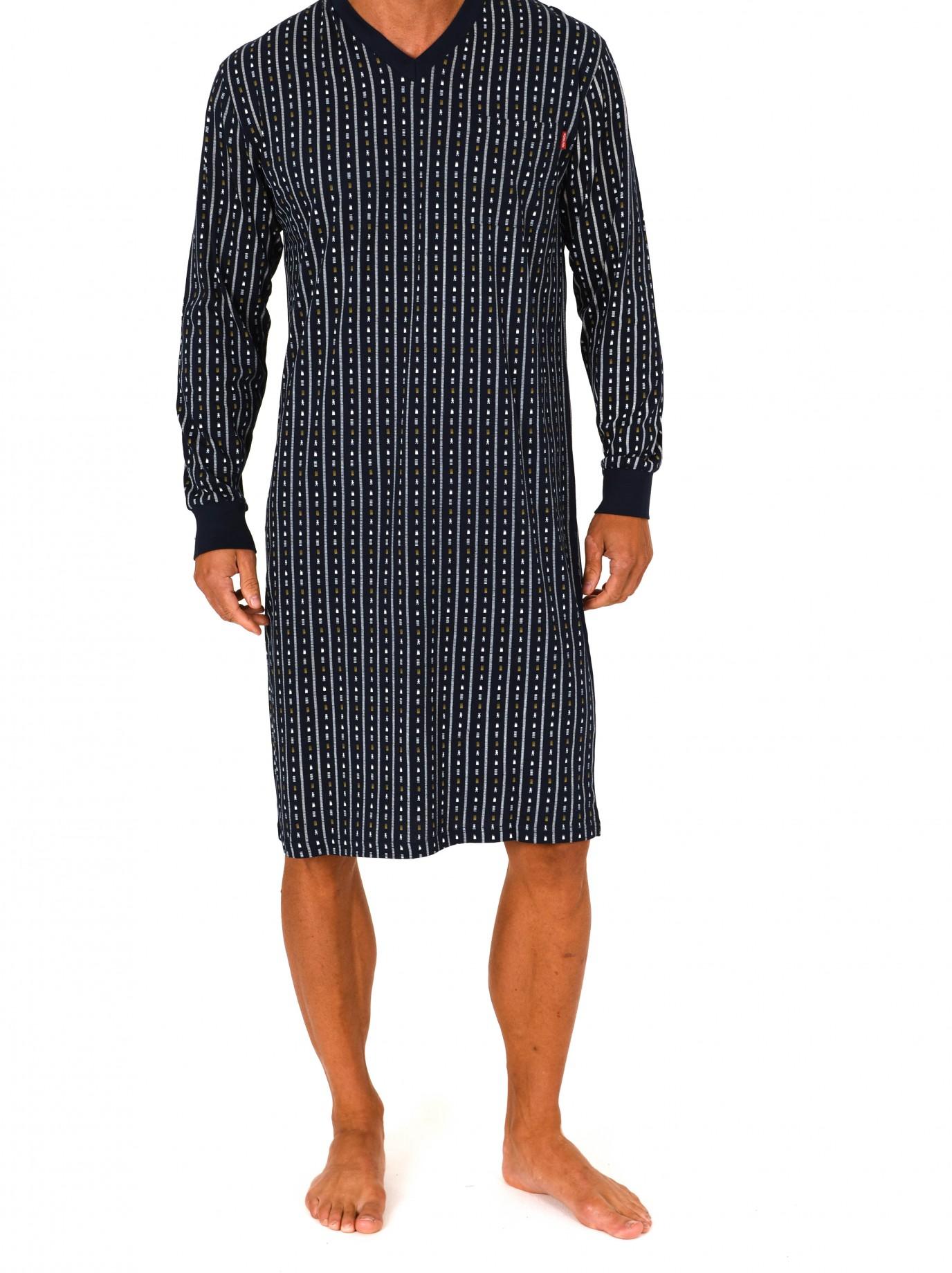 Herren Nachthemd in Single Jersey Qualität. Das Nachthemd hat einen klassischen Druck und eine Brusttasche.