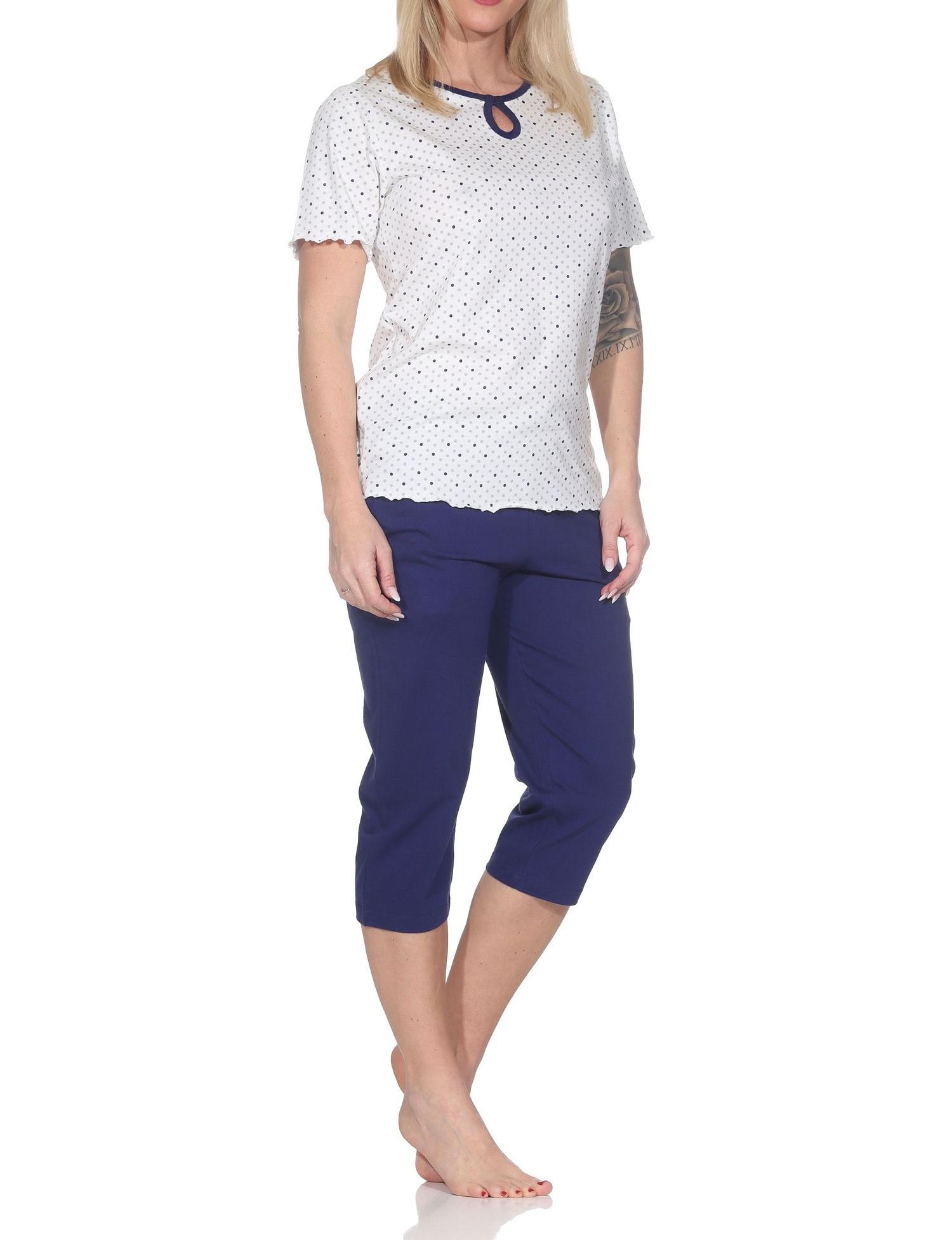Normann Damen Capri Schlafanzug kurzarm Shorty in Tupfen Punkte Optik – auch in Übergröße