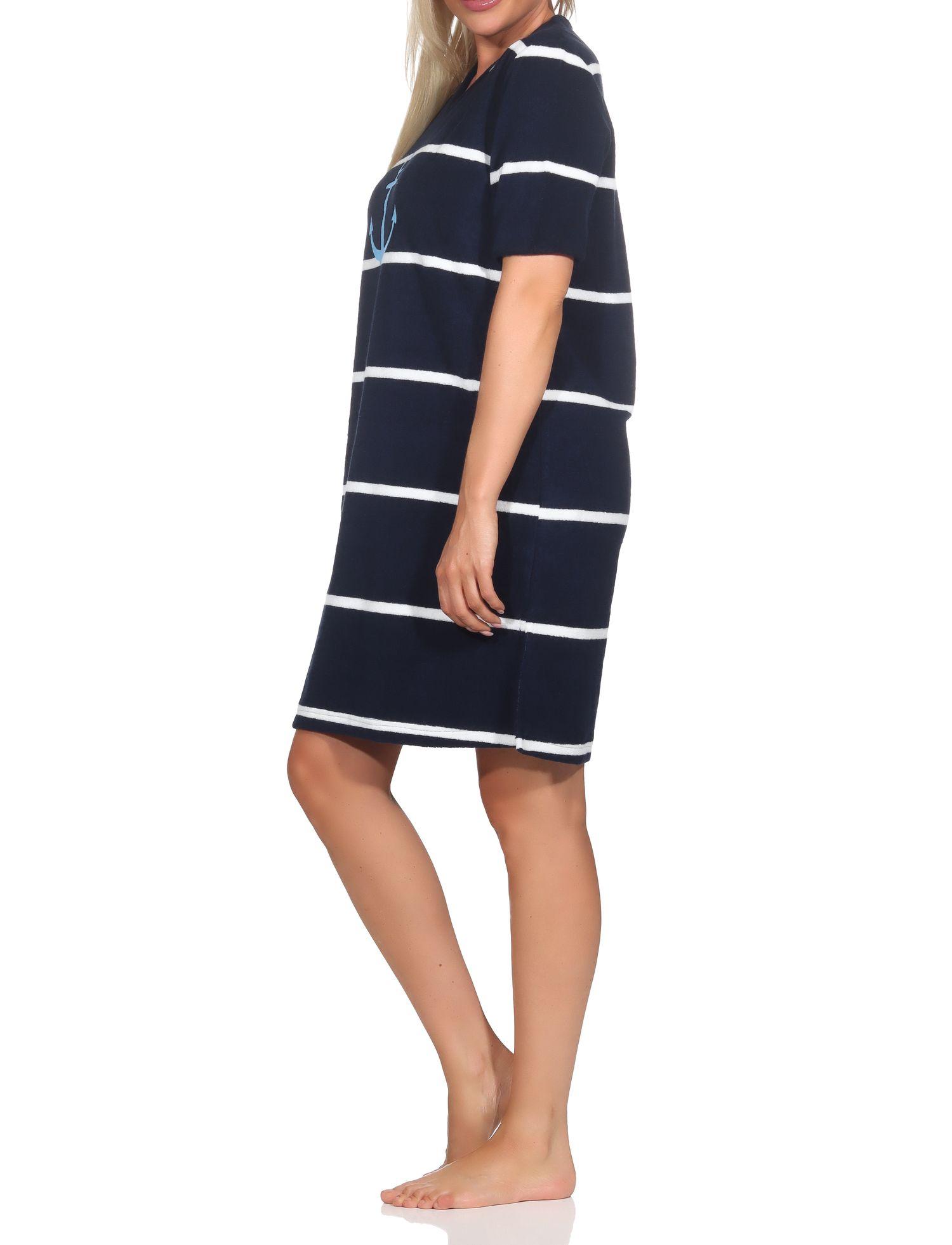 Normann Damen Frottee Nachthemd in maritimer Optik mit Anker Motiv - auch in Übergröße