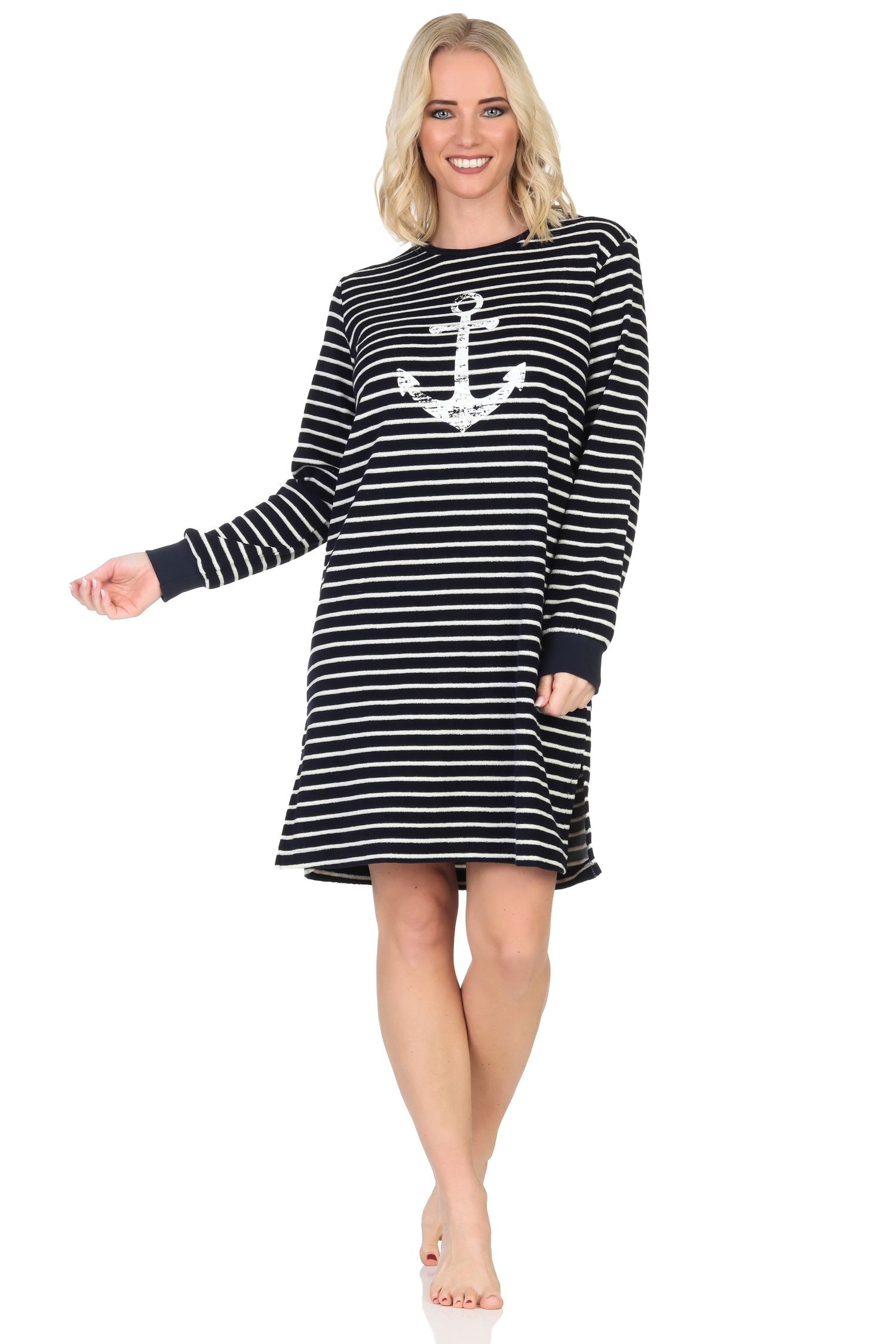 Normann Damen Frottee Nachthemd in maritimer Optik und Anker Motiv – auch in Übergröße
