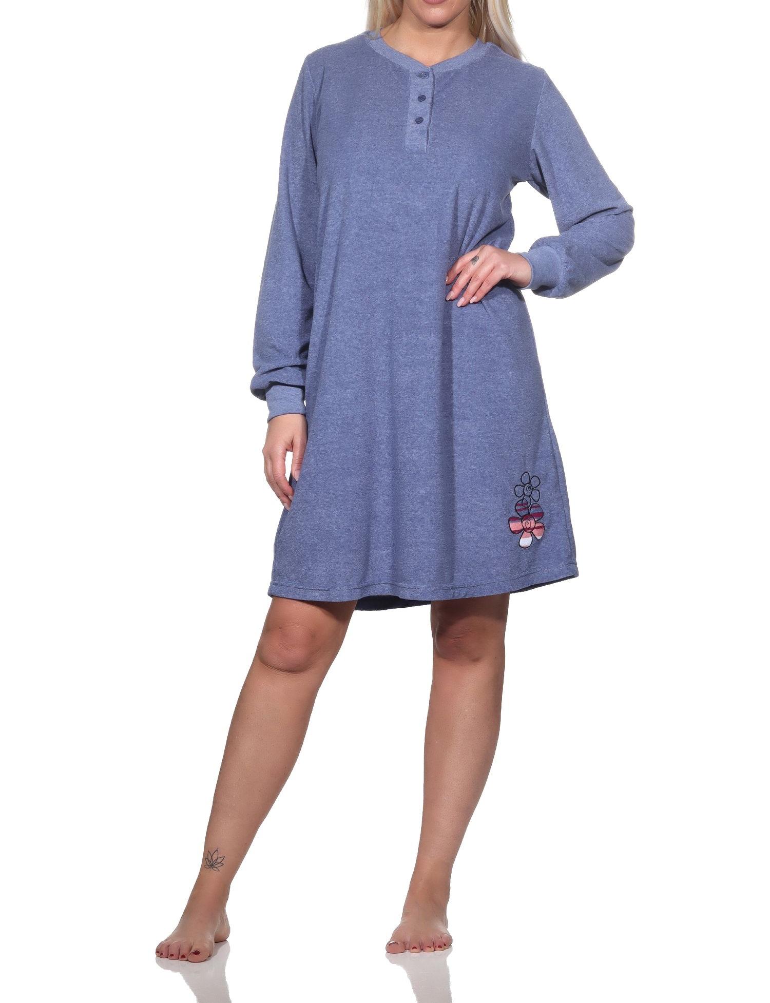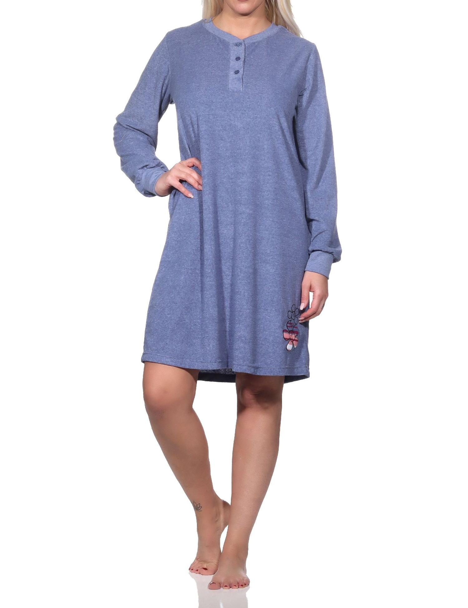 - ZEITLOSE ELEGANZ: Langarm Damen Frottee Nachthemd in zeitlos eleganter Optik und mit Applikation, Markenqualität von Normann