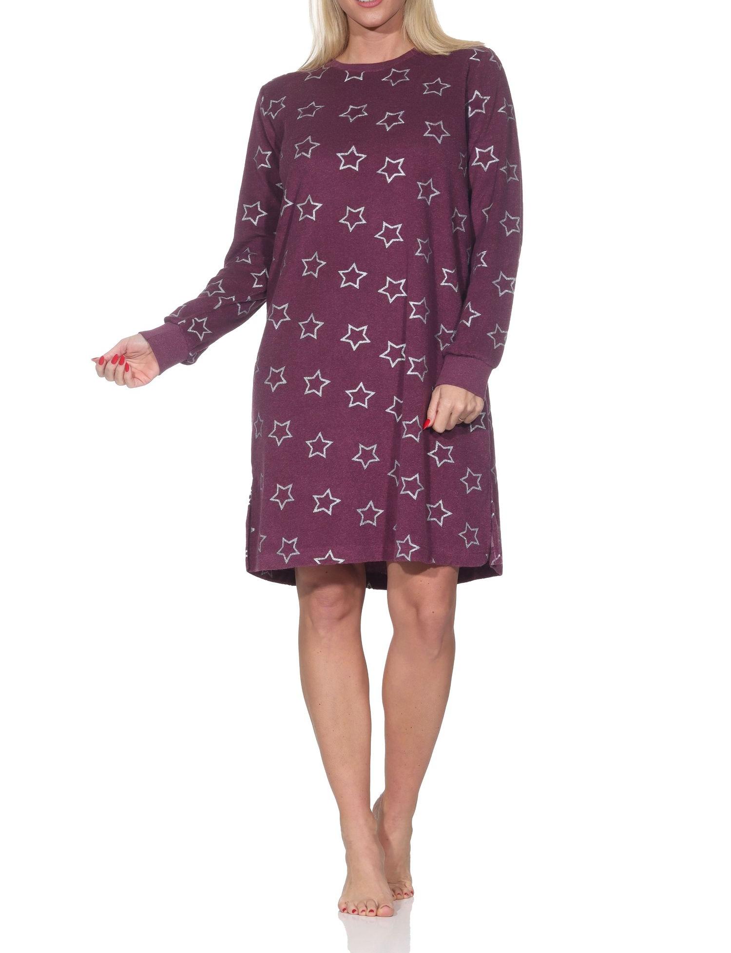 Normann Damen Frottee langarm Nachthemd mit Bündchen in edler Sterne Optik - auch in Übergröße