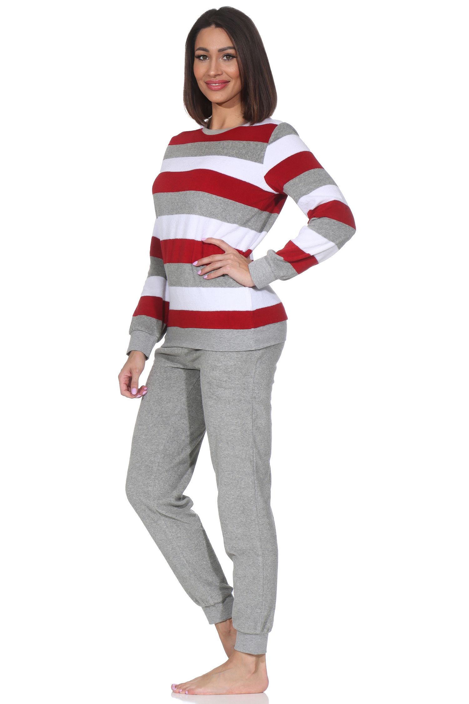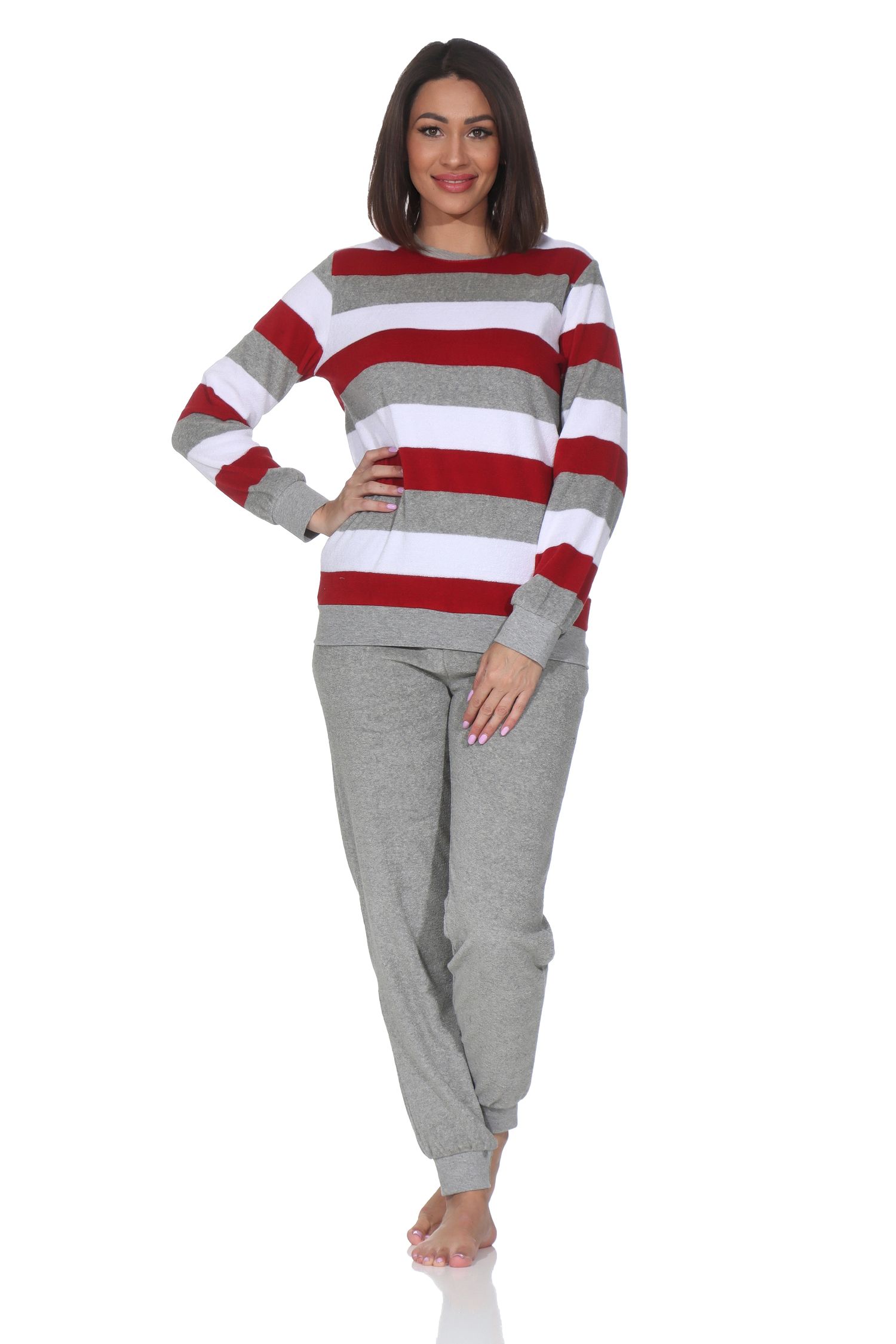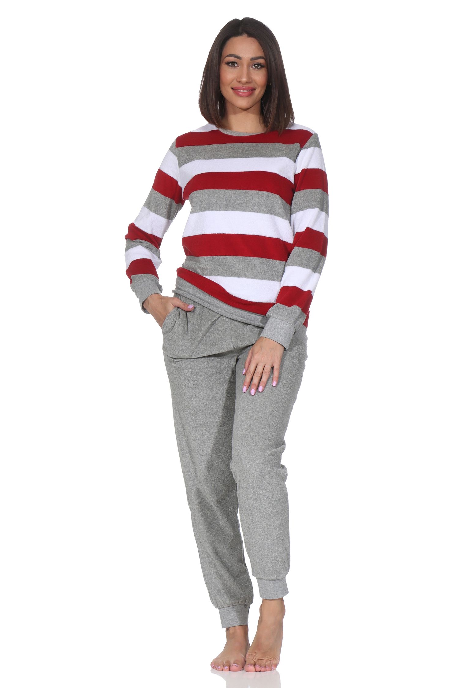 Normann Damen Frottee Schlafanzug mit Bündchen in edler Blockstreifenoptik - auch in Übergröße