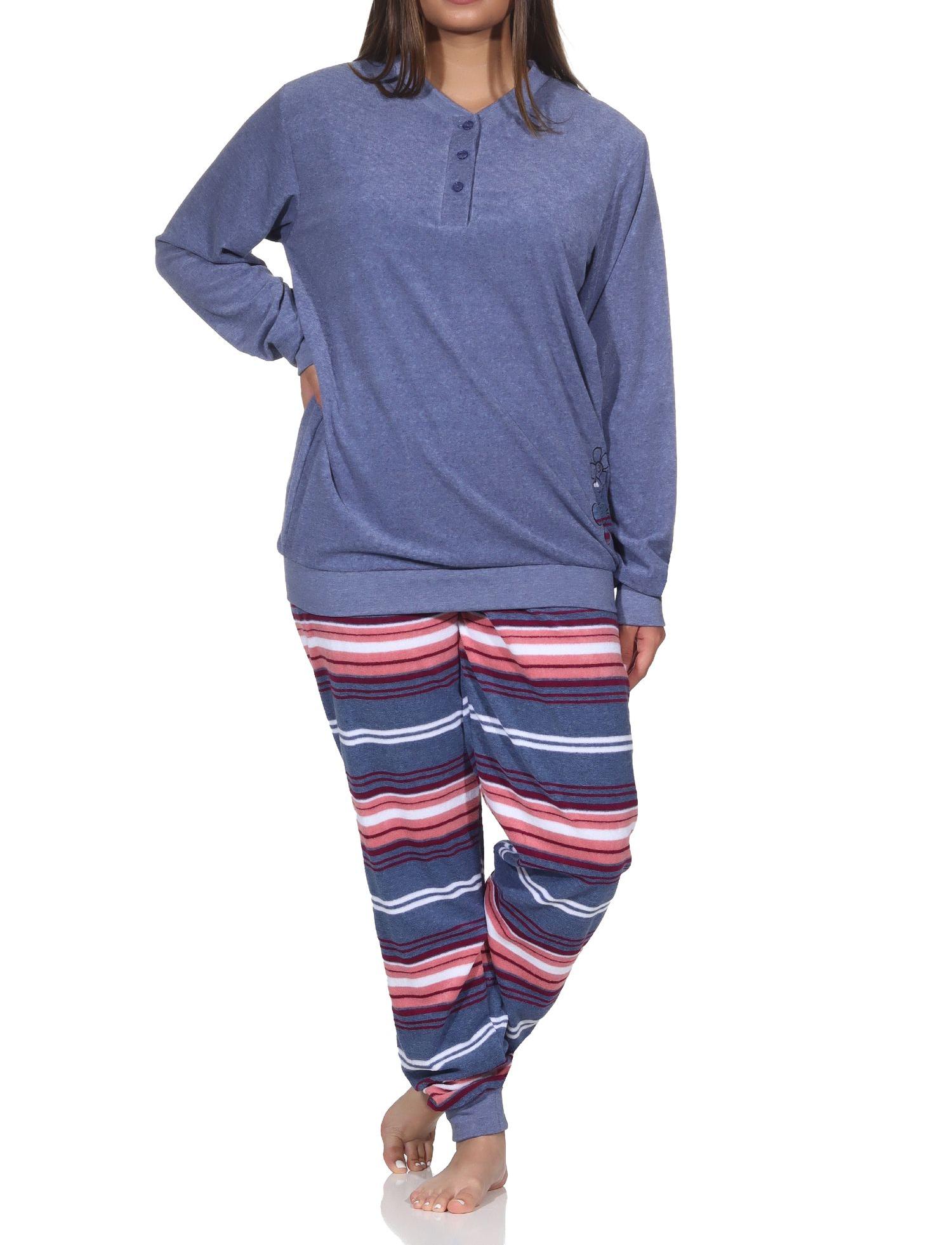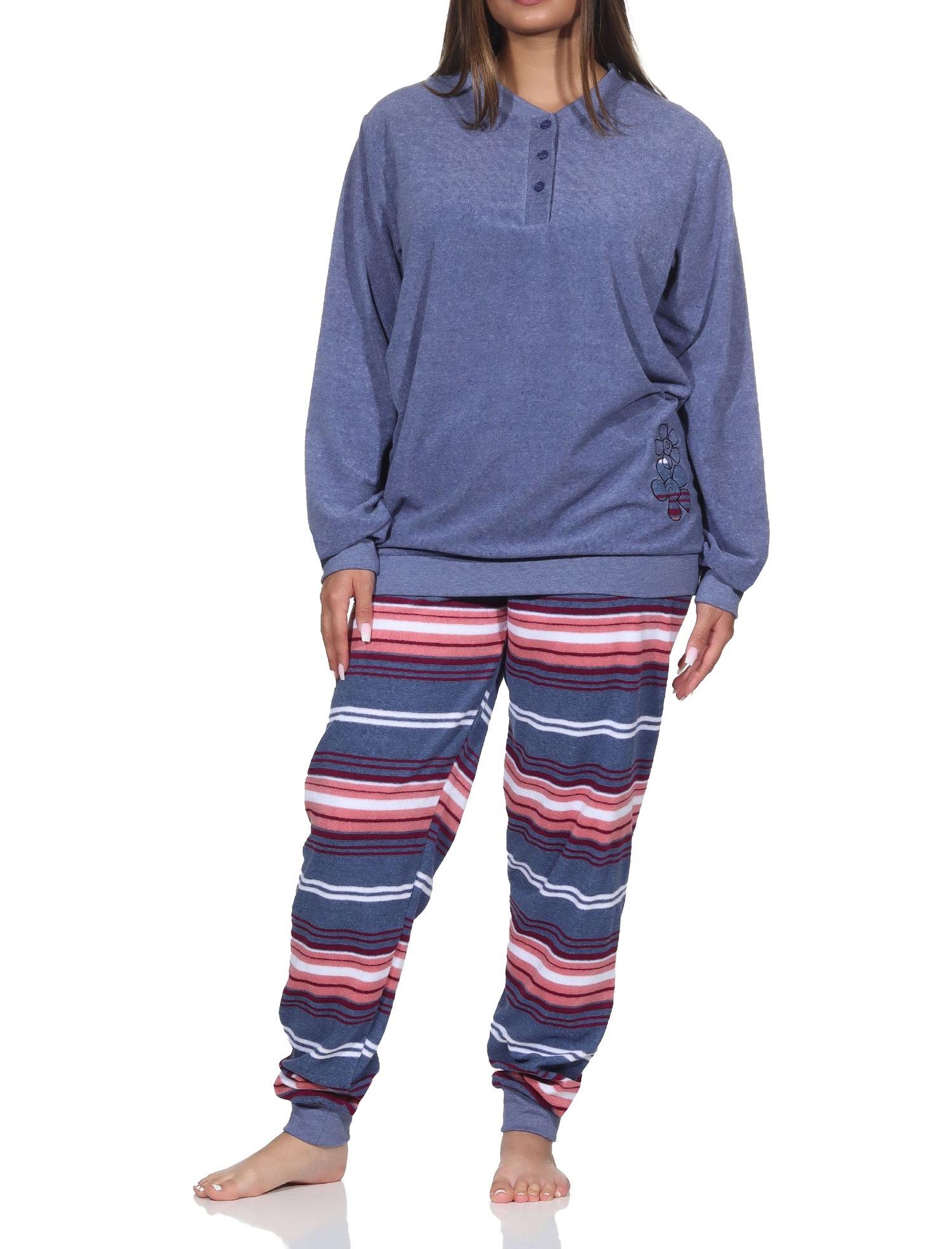 Normann Damen Frottee Schlafanzug lang mit Bündchen - Hose gestreift - auch in Übergröße