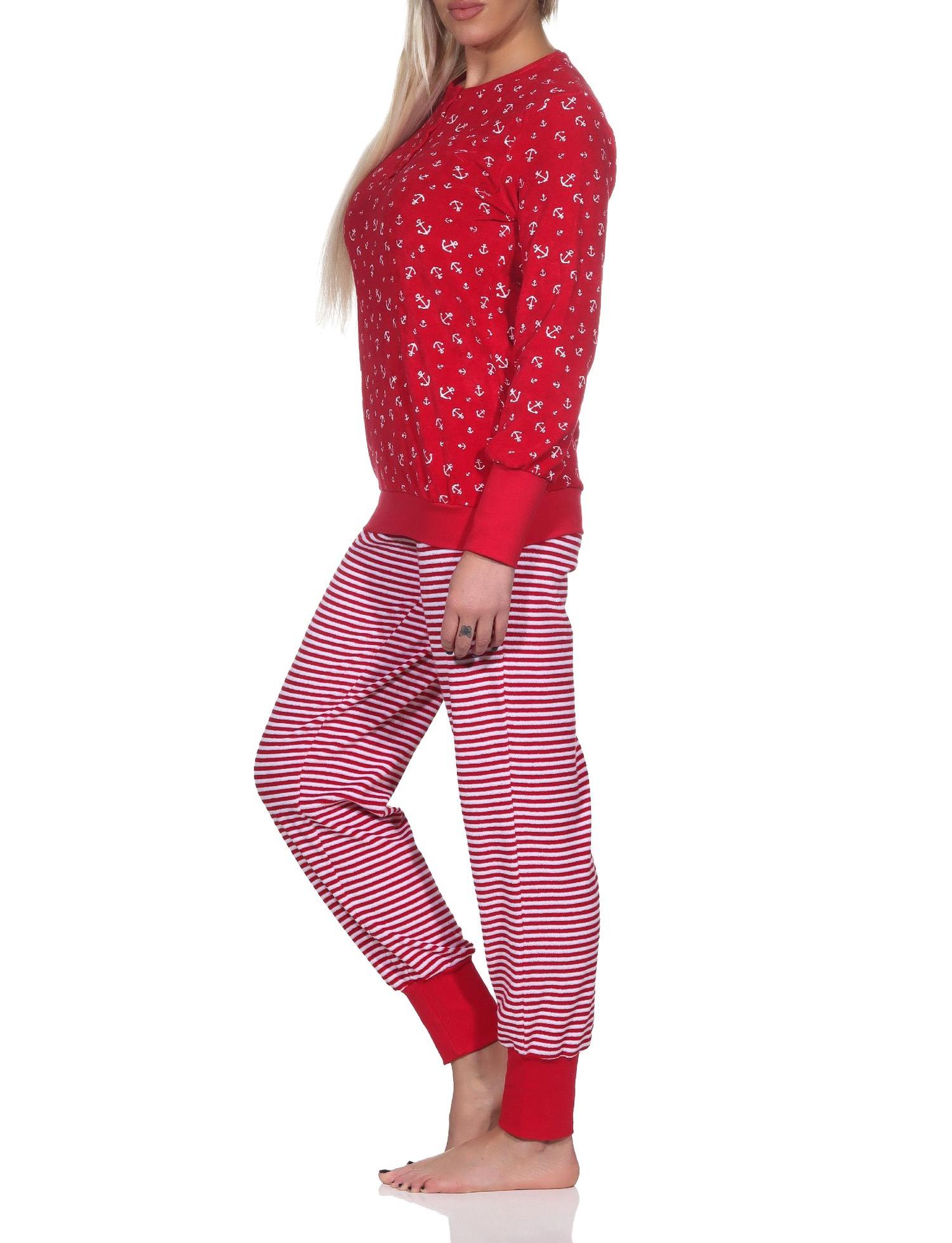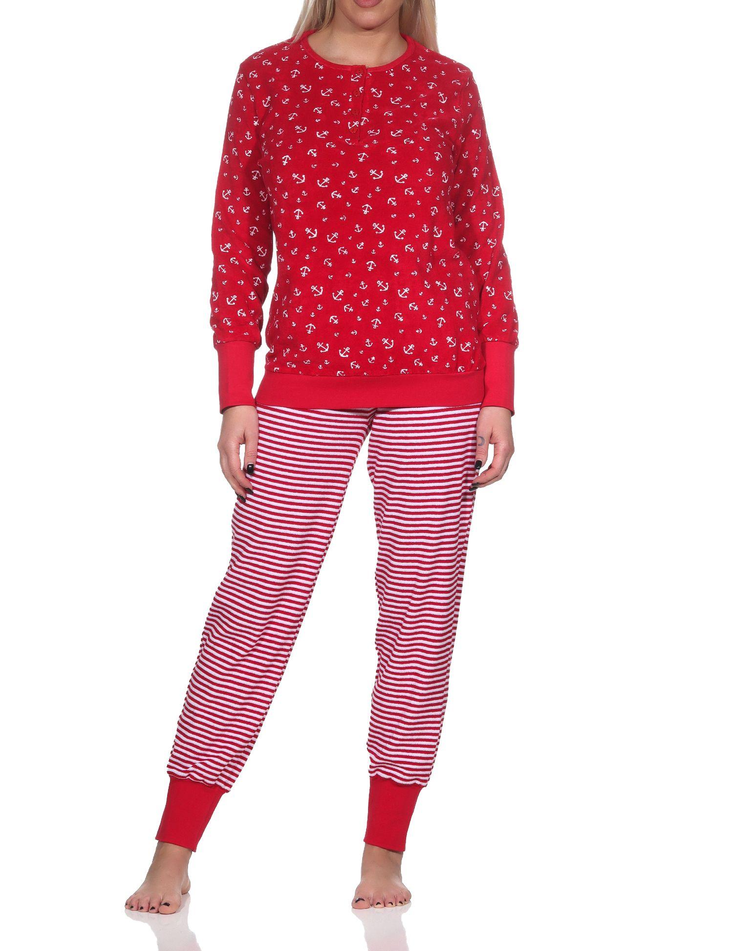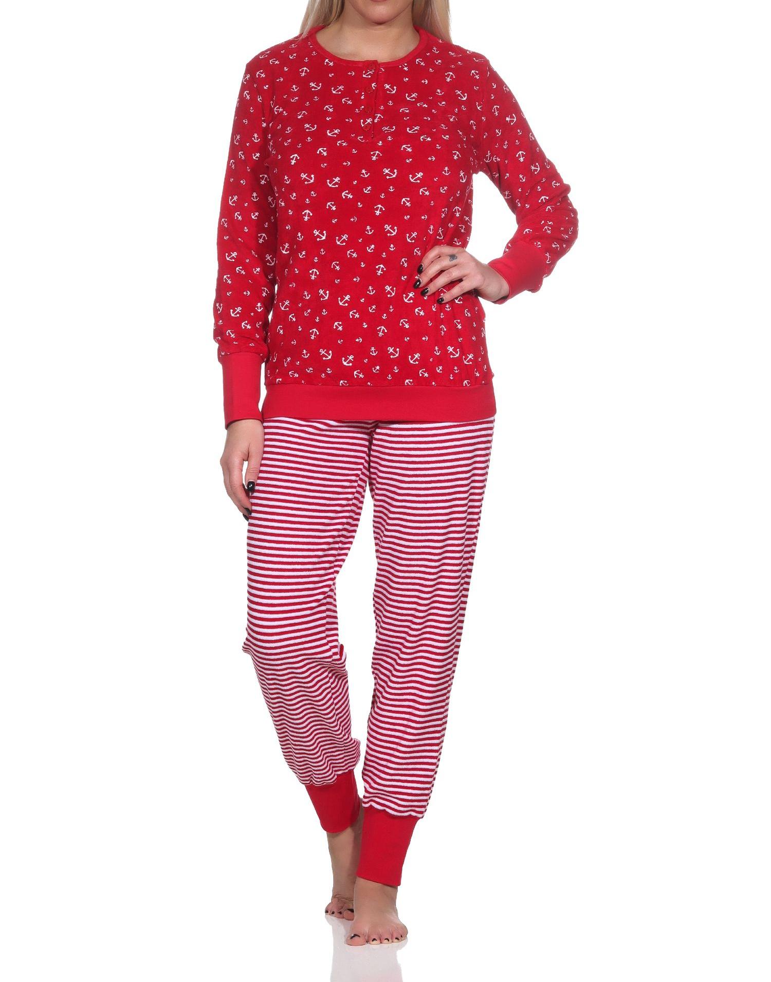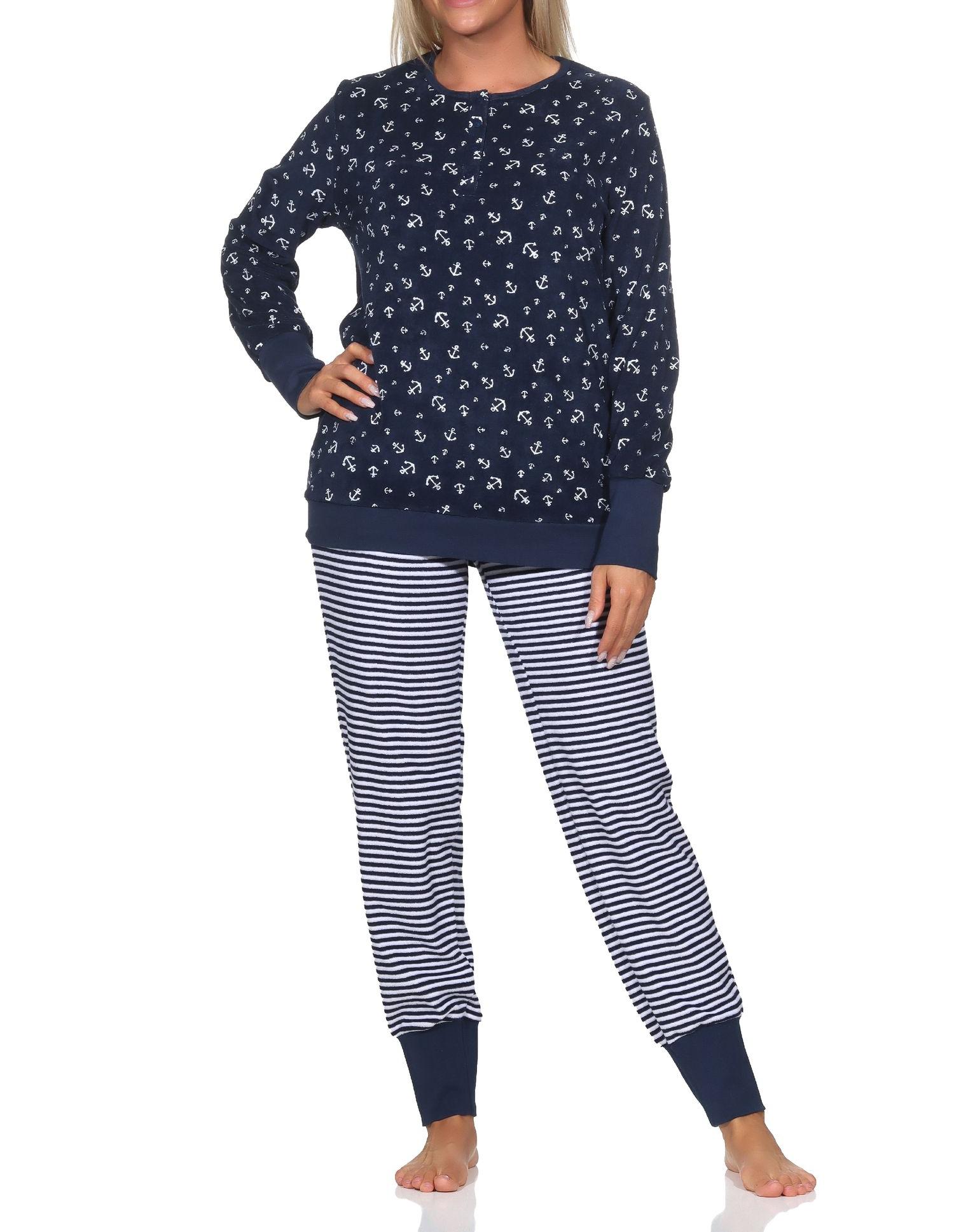 Normann Damen Frottee Schlafanzug lang mit Bündchen in maritimer Optik - auch in Übergröße