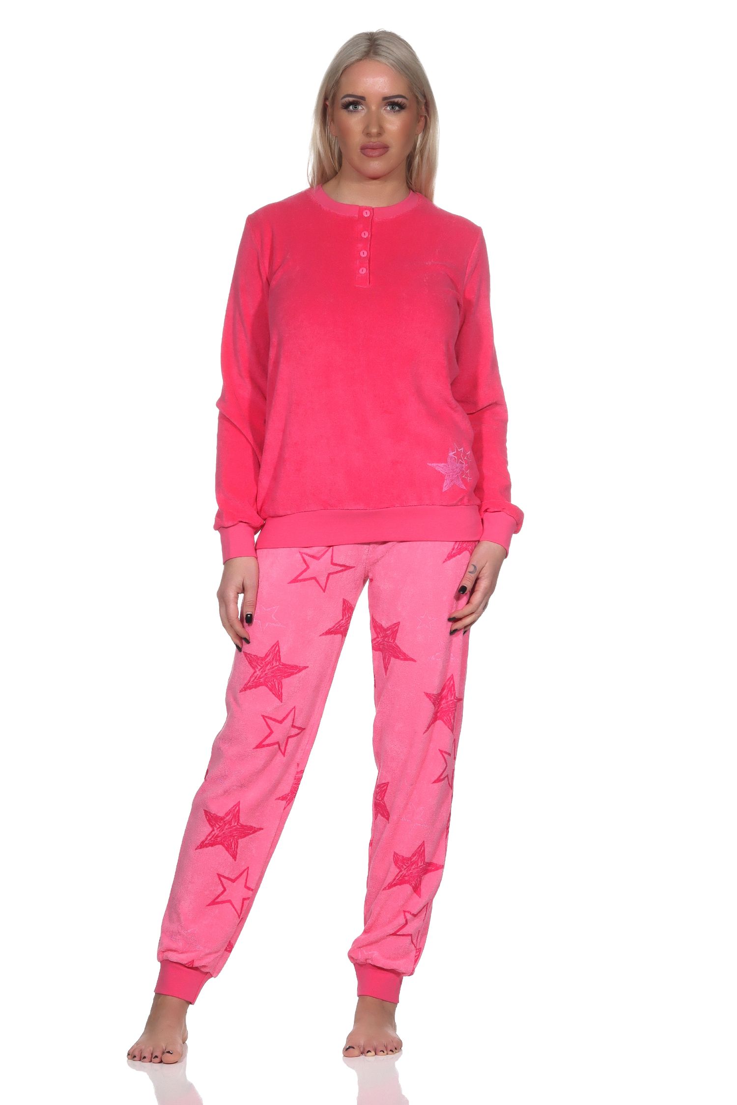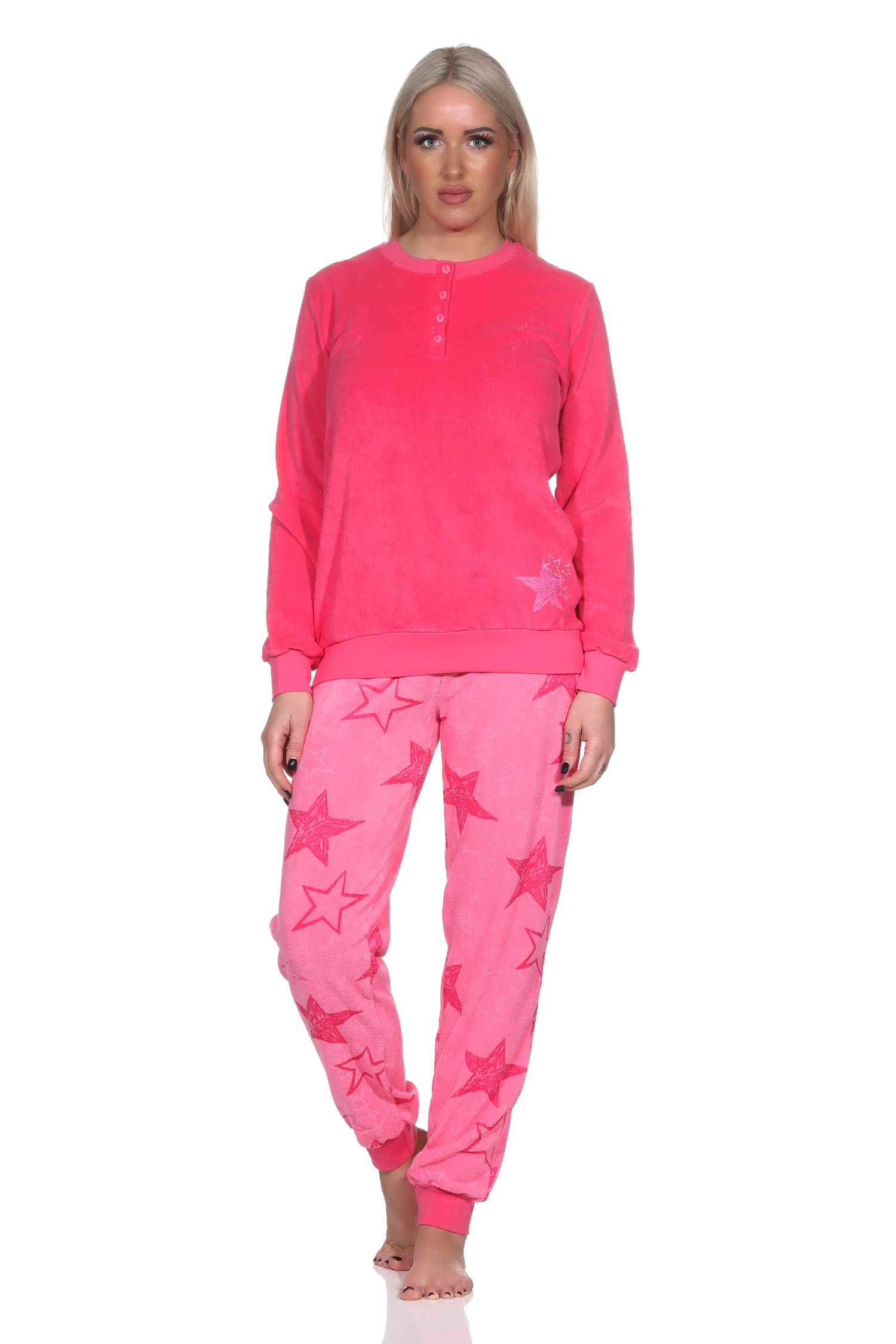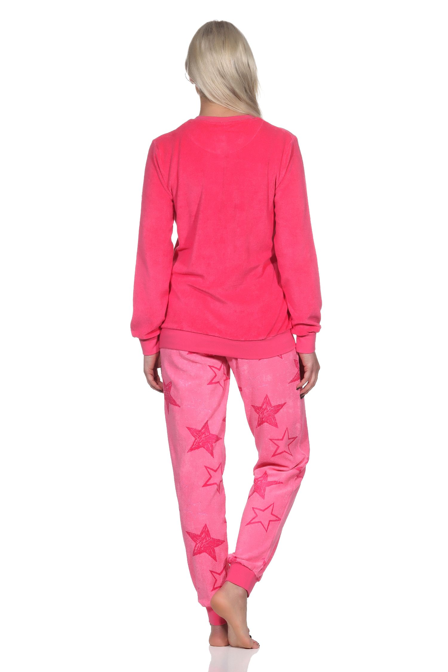 Normann Damen Frottee Schlafanzug langarm mit Bündchen in Sterne Optik - auch in Übergrösse - 223 201 93 021