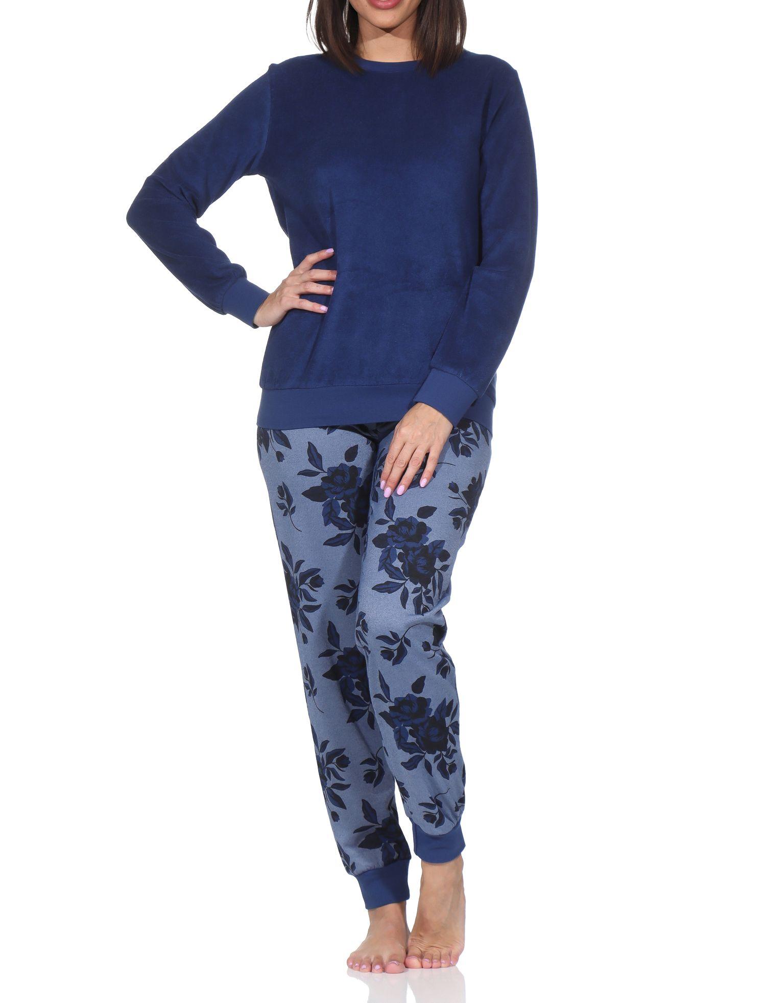 Normann Damen Frottee Schlafanzug langarm mit Bündchen in edler Optik - auch in Übergröße