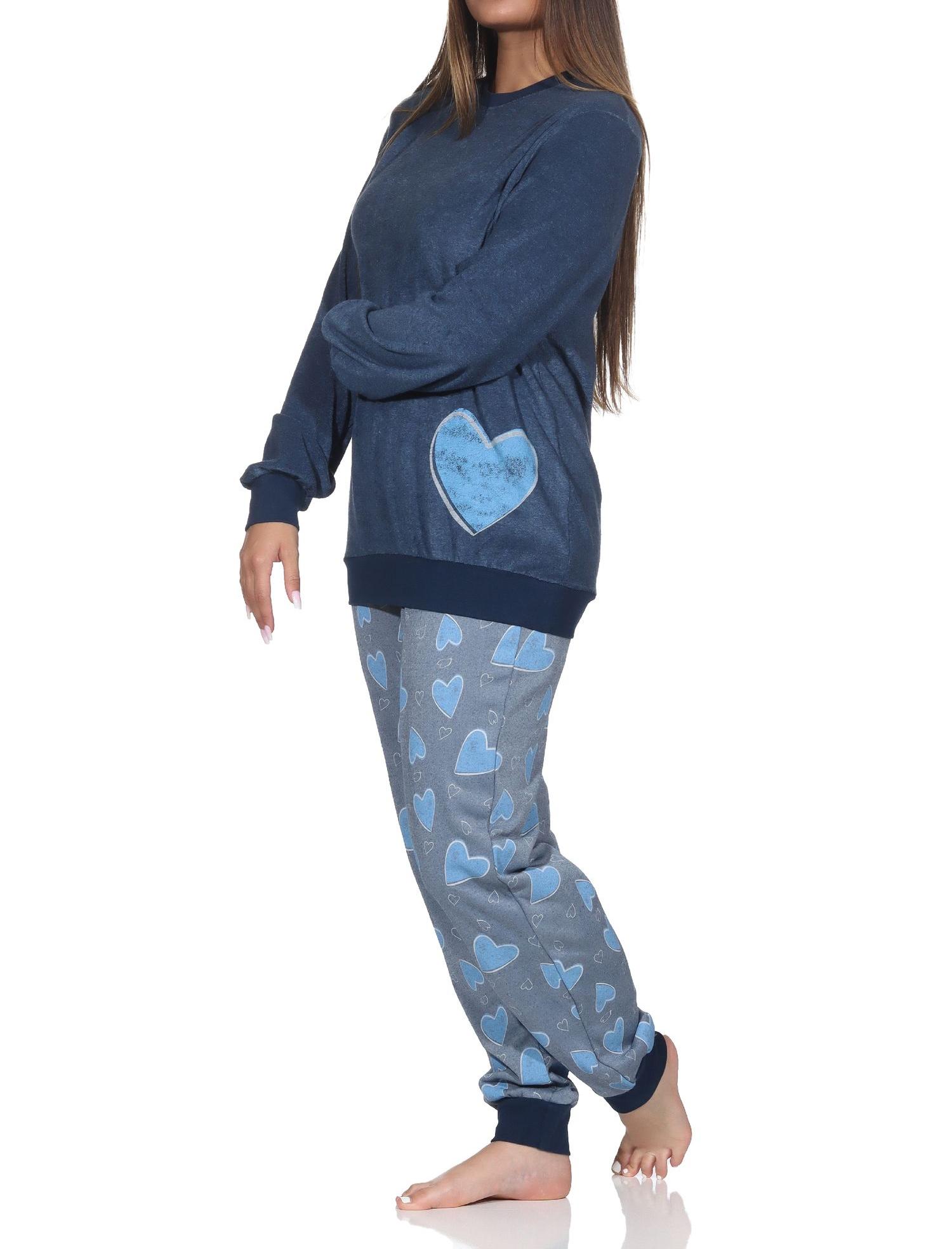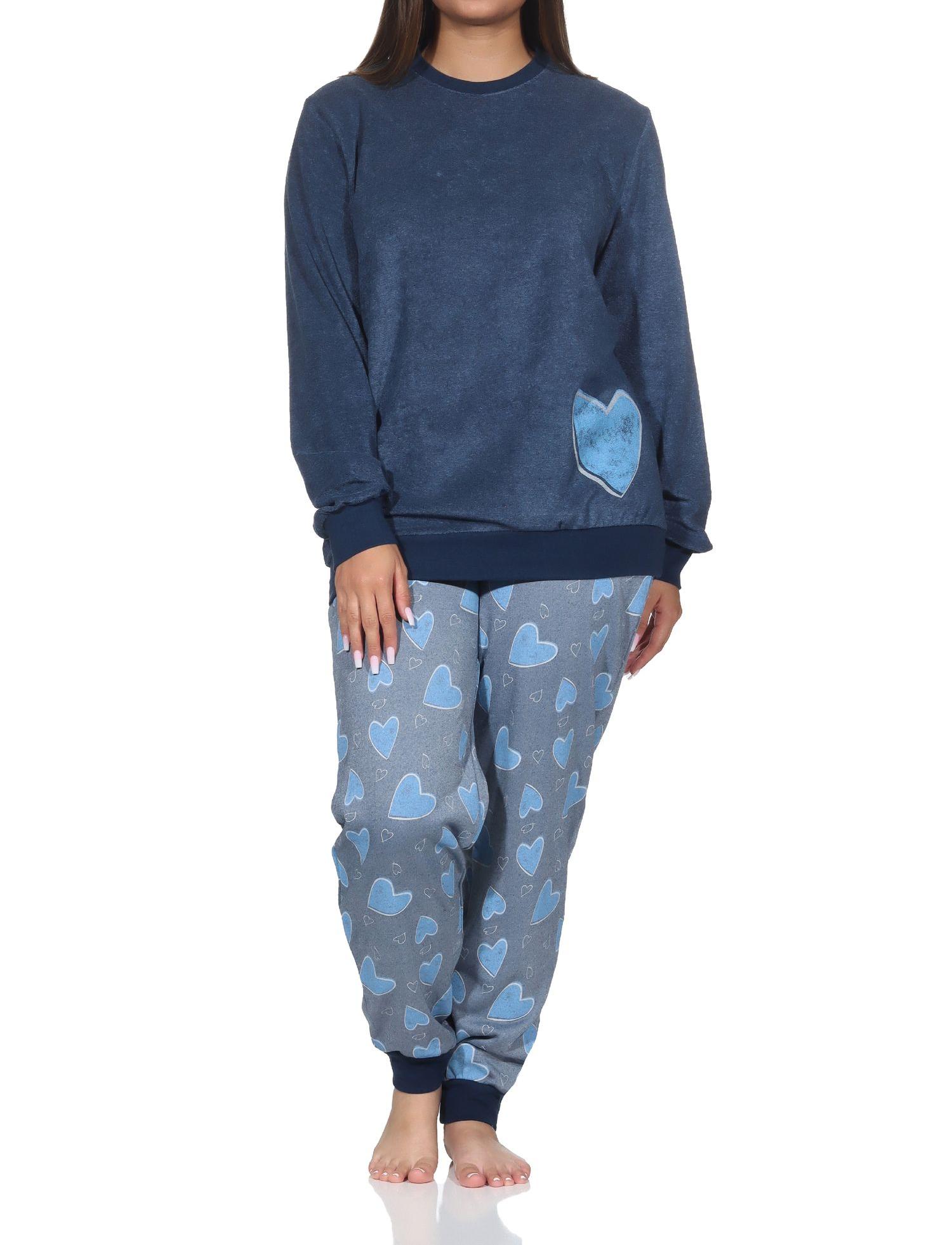 Normann Damen Frottee Schlafanzug langarm mit Bündchen in Herz Optik - auch in Übergrösse