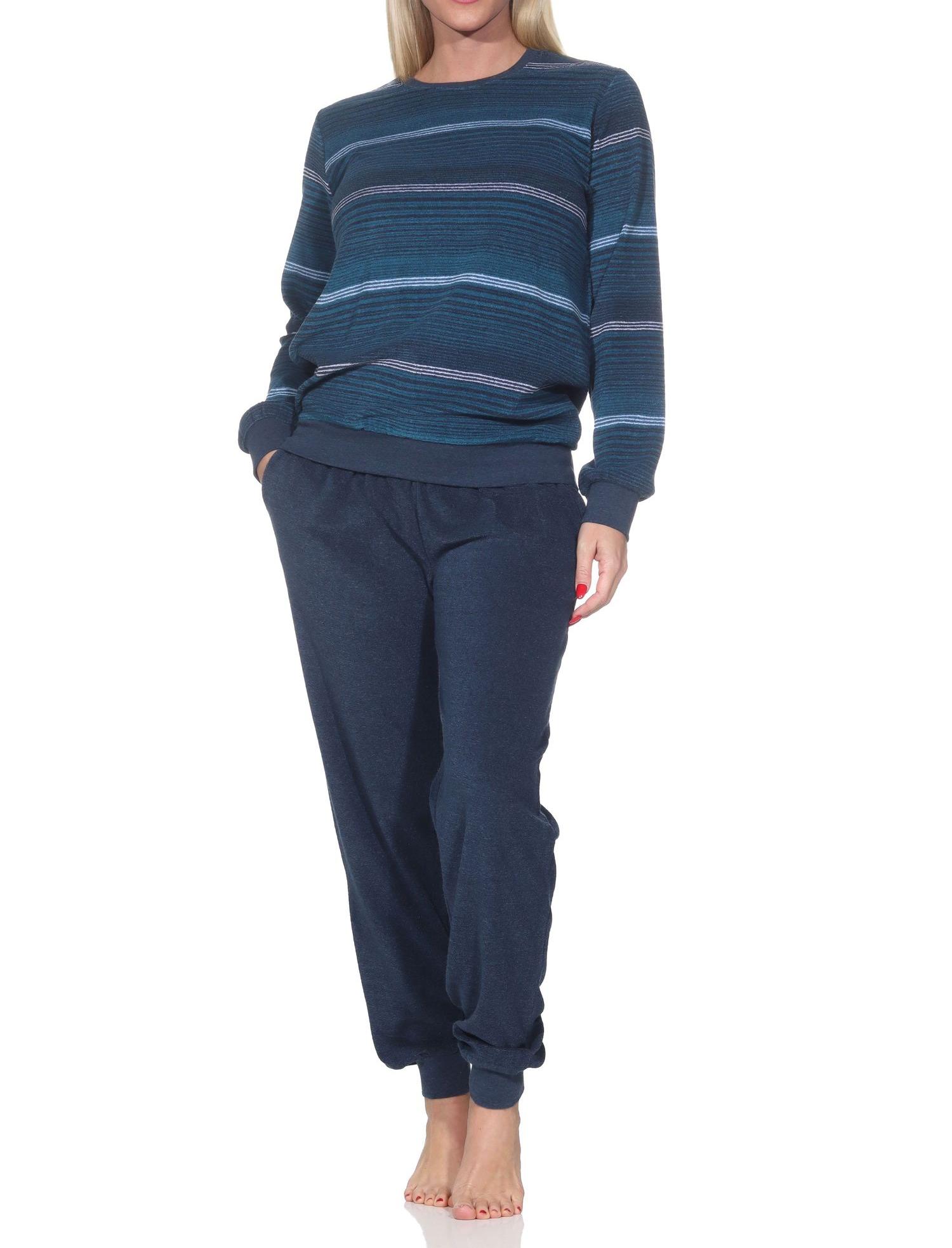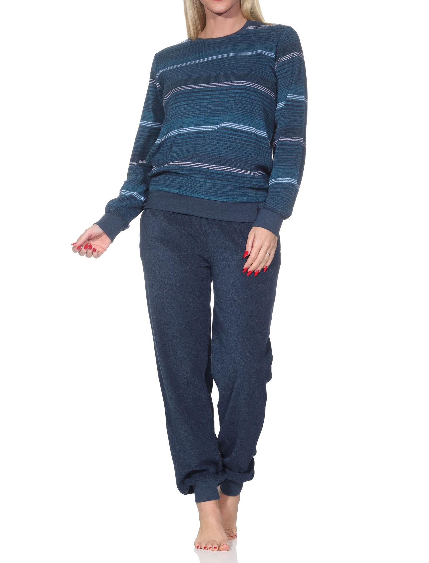 Normann Damen Frottee Schlafanzug mit Bündchen in edler Streifenoptik - auch in Übergröße