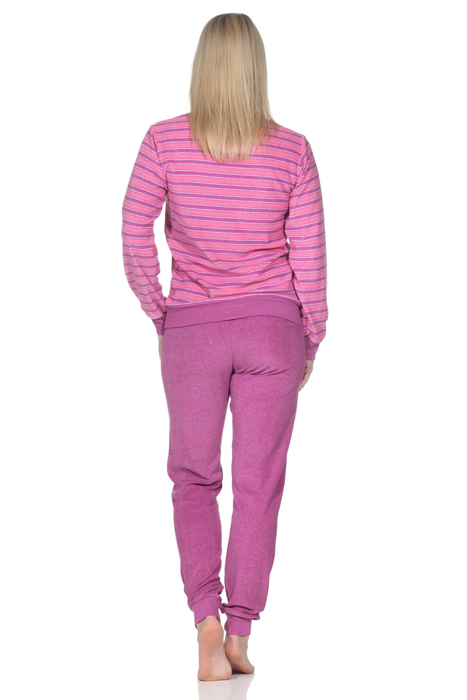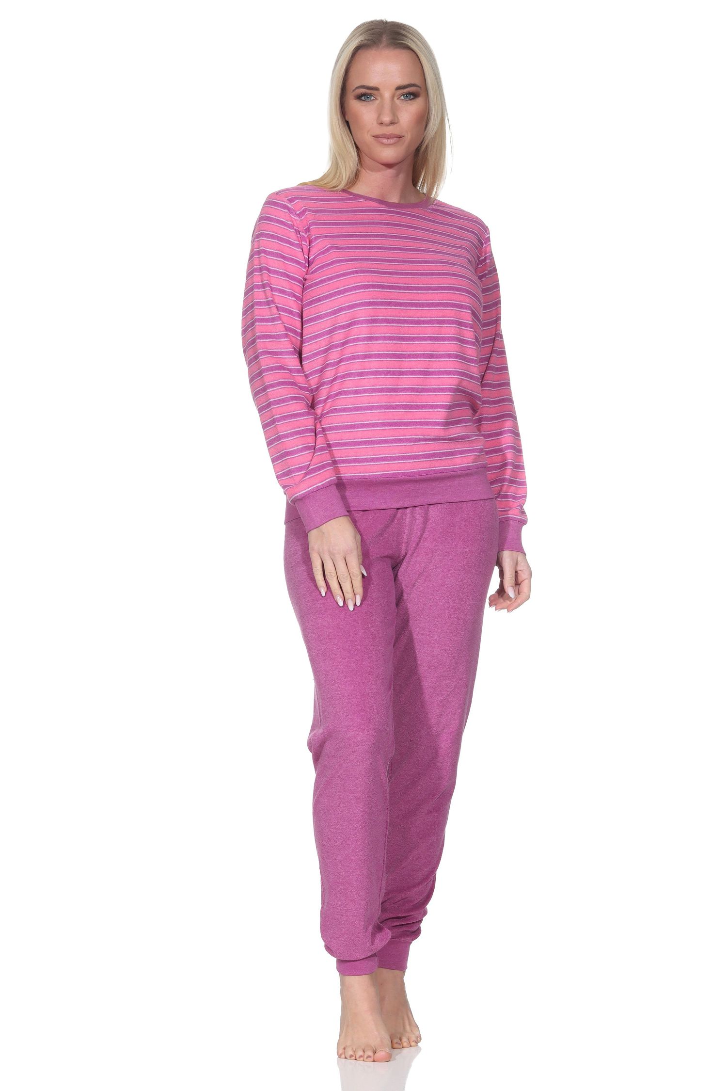 Normann Damen Frottee Schlafanzug mit Bündchen Pyjama in Streifenoptik – auch in Übergröße