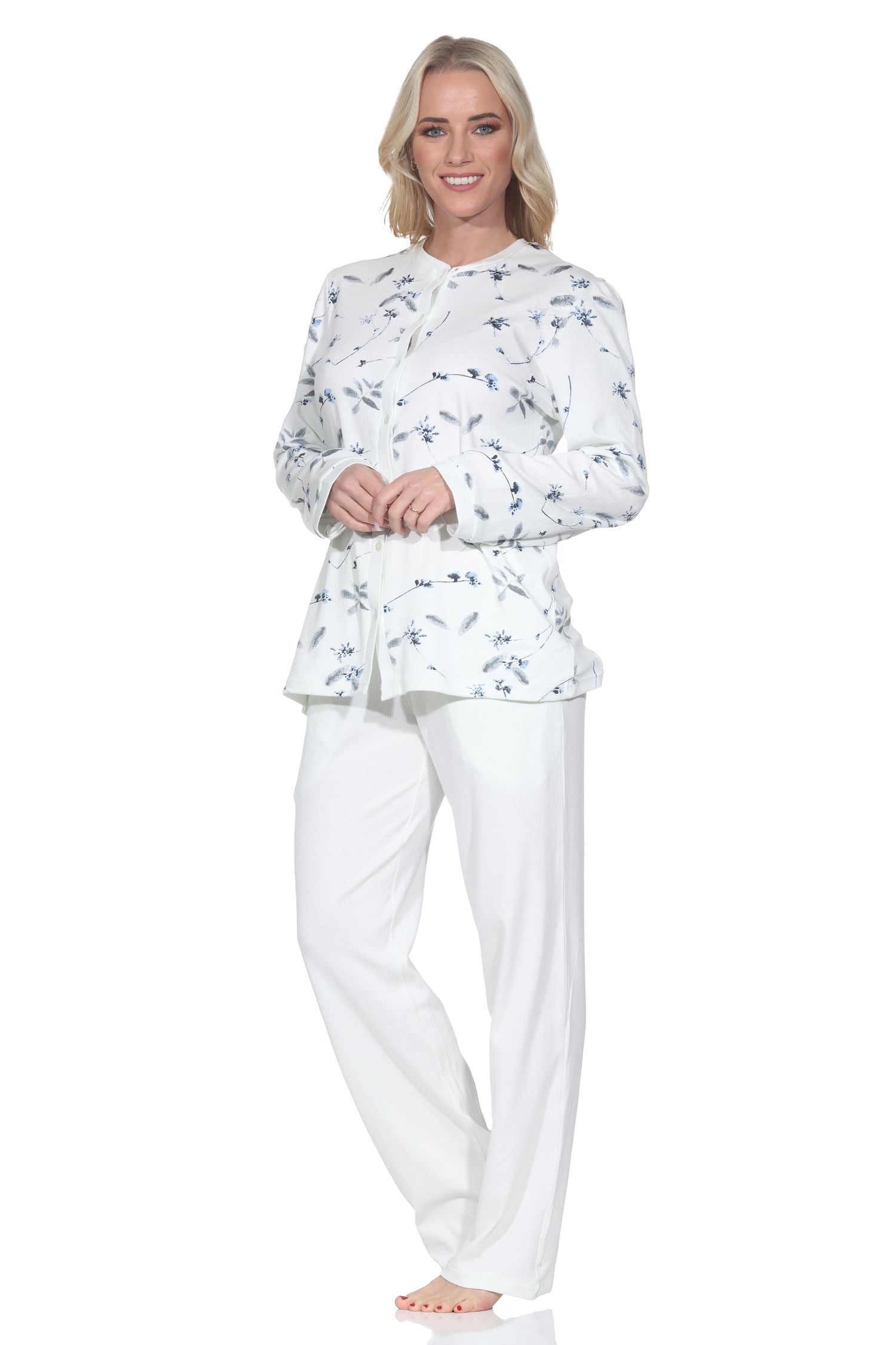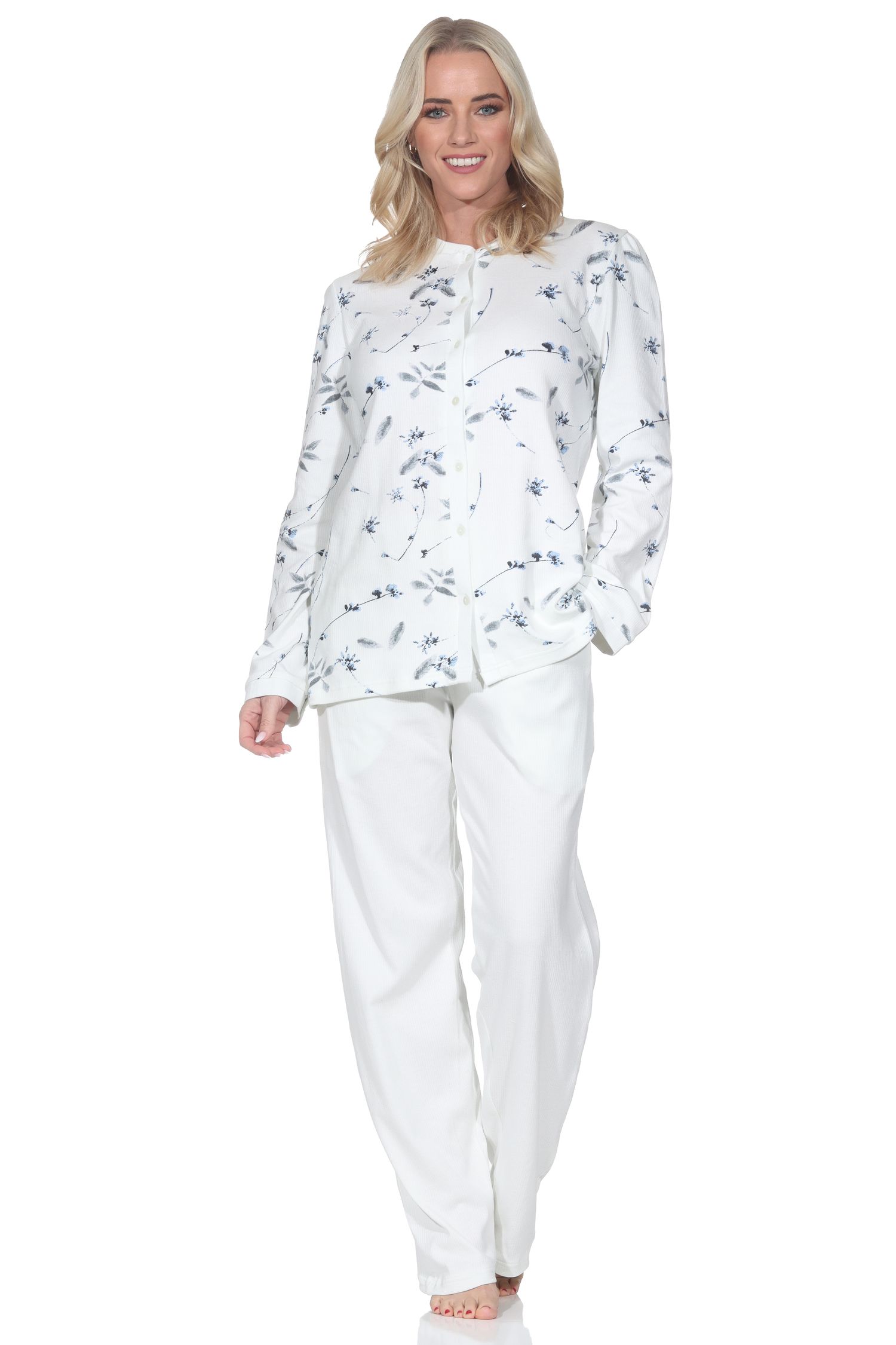 Normann Damen Interlock Schlafanzug zum durchknöpfen - auch in Übergrößen – Edle optik
