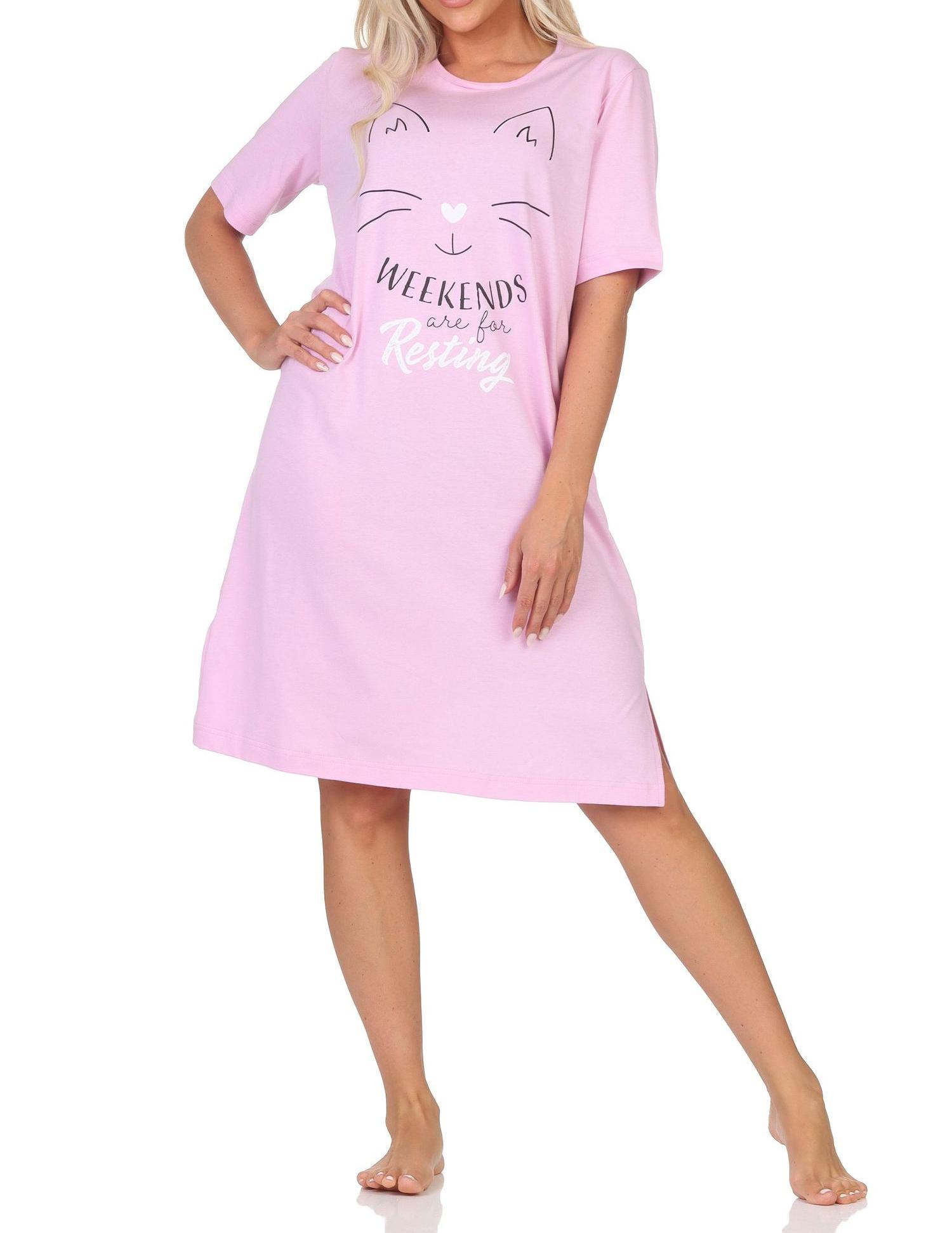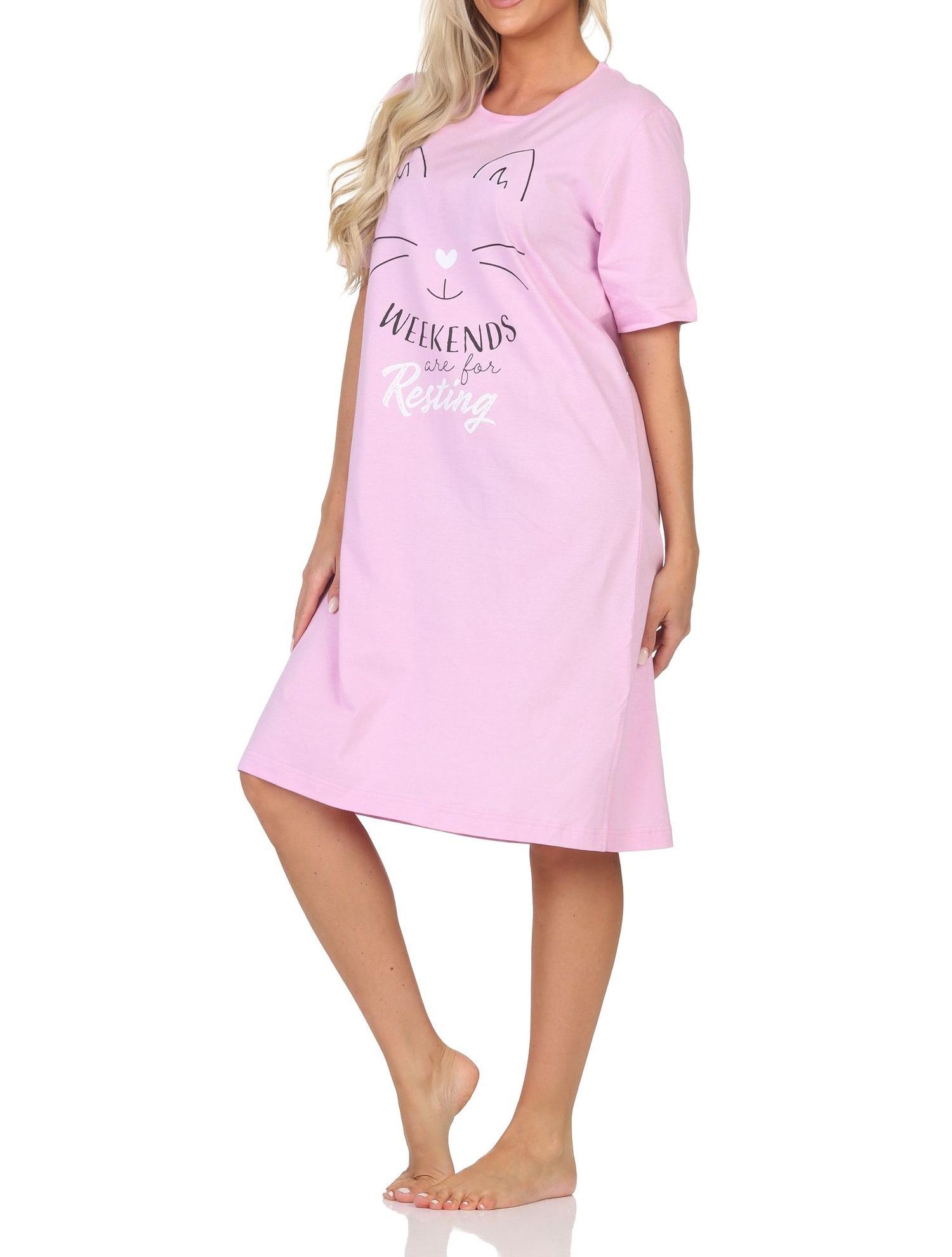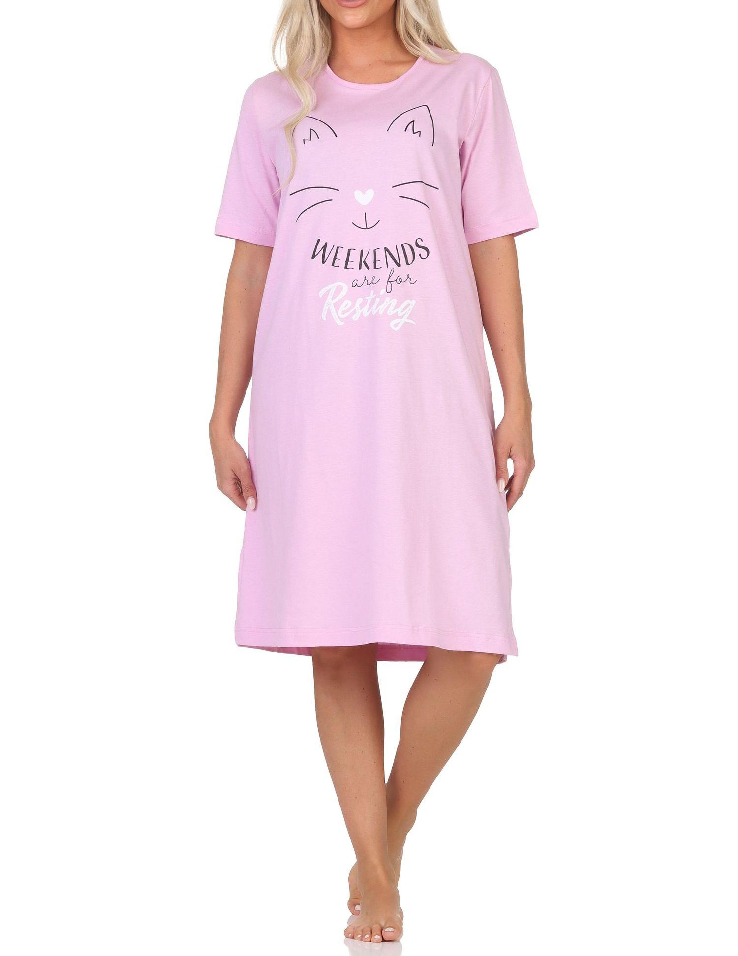 Normann Damen kurzarm Nachthemd in Katzen Optik – auch in Übergrößen