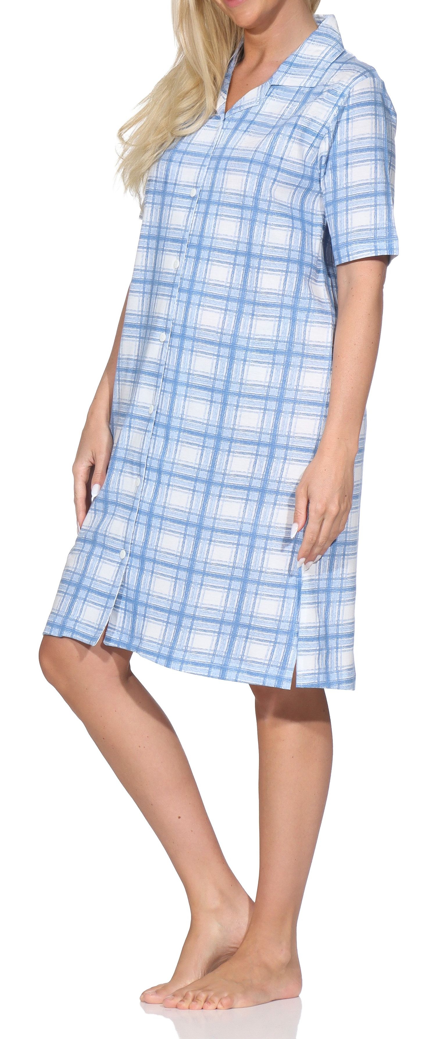 Normann Damen kurzarm Nachthemd kariert Single Jersey zum Durchknöpfen – auch in Übergröße