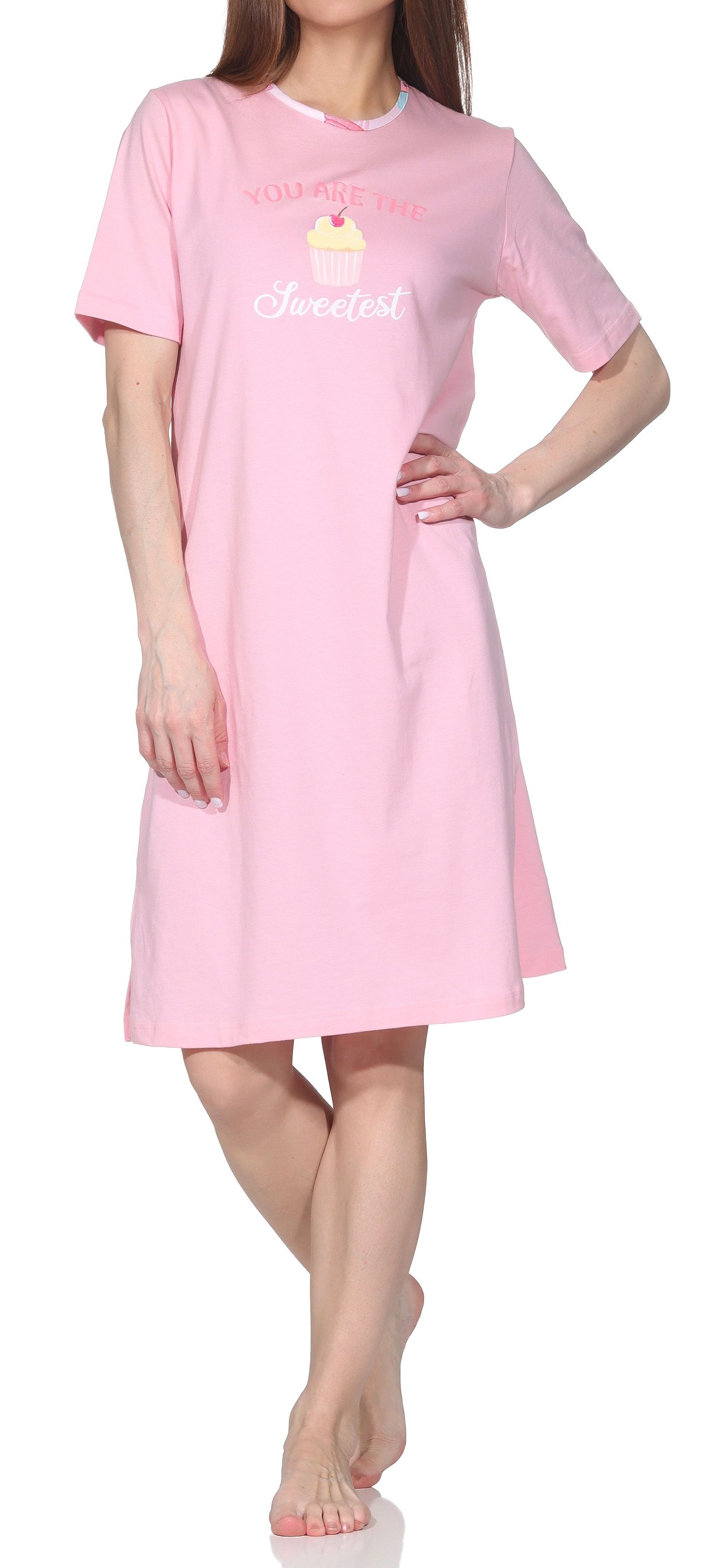 Normann Damen Nachthemd kurzarm – Süßes Cupcake-Motiv & „Sweetest“ Frontprint