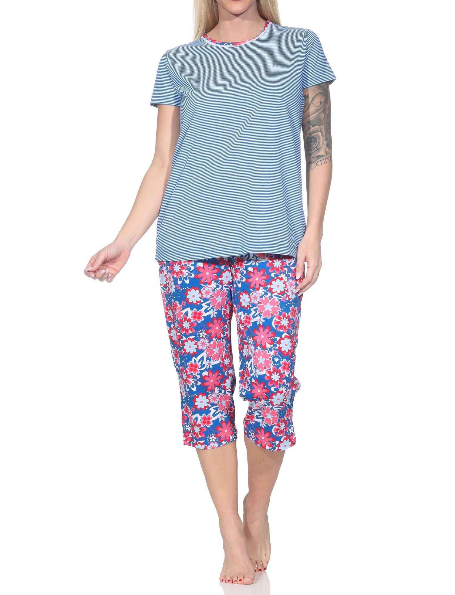 Normann Damen kurzarm Schlafanzug mit Caprihose, Oberteil gestreift – auch in Übergrößen