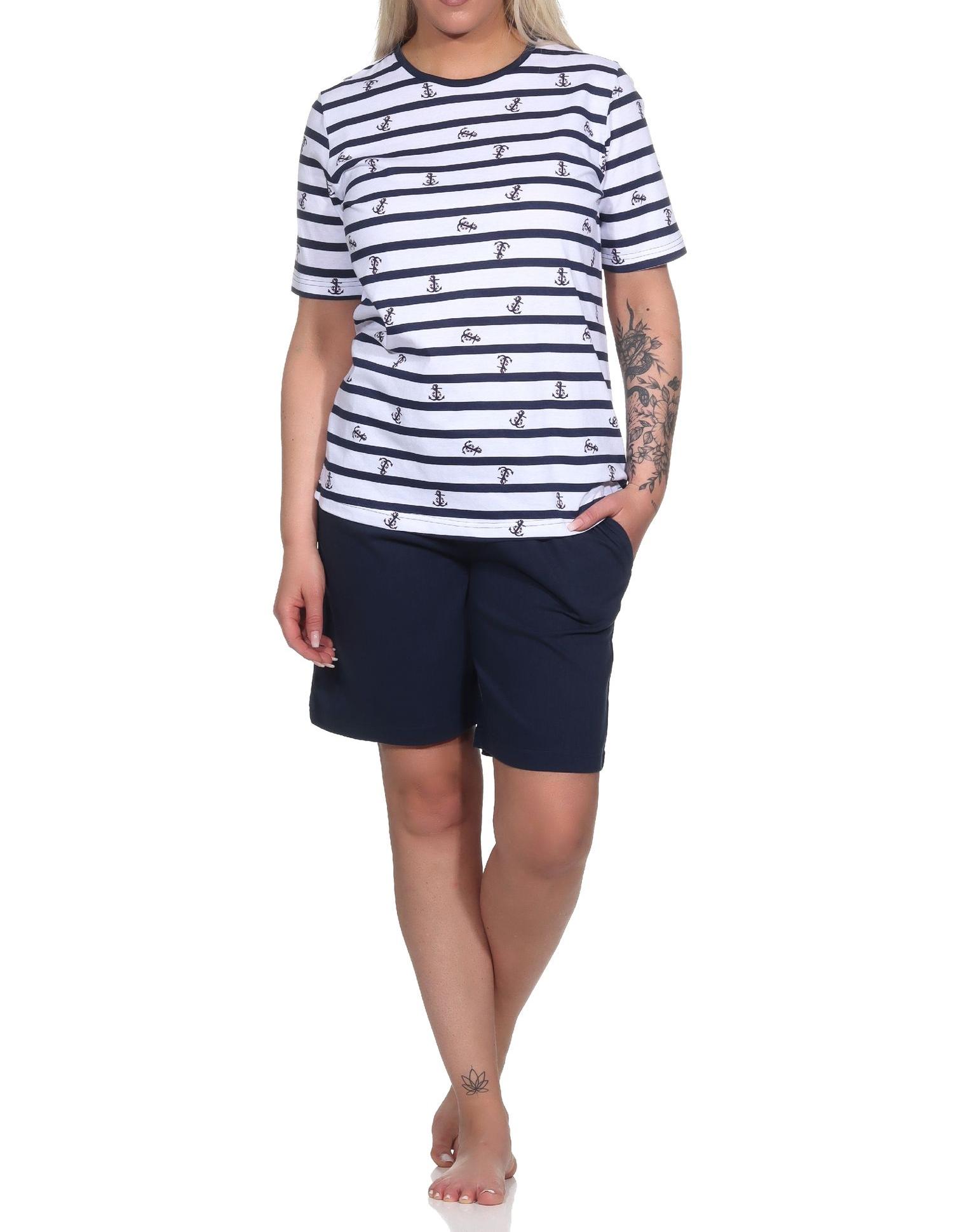 Normann Damen kurzarm Schlafanzug Shorty in maritimer Optik - auch in Übergrössen