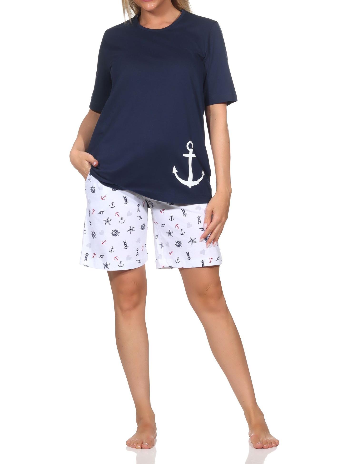 - MARITIME OPTIK: Kurzärmliger Damen Pyjama Shorty in wunderschöner maritimer Optik wie Leuchtturm oder Anker als Motiv