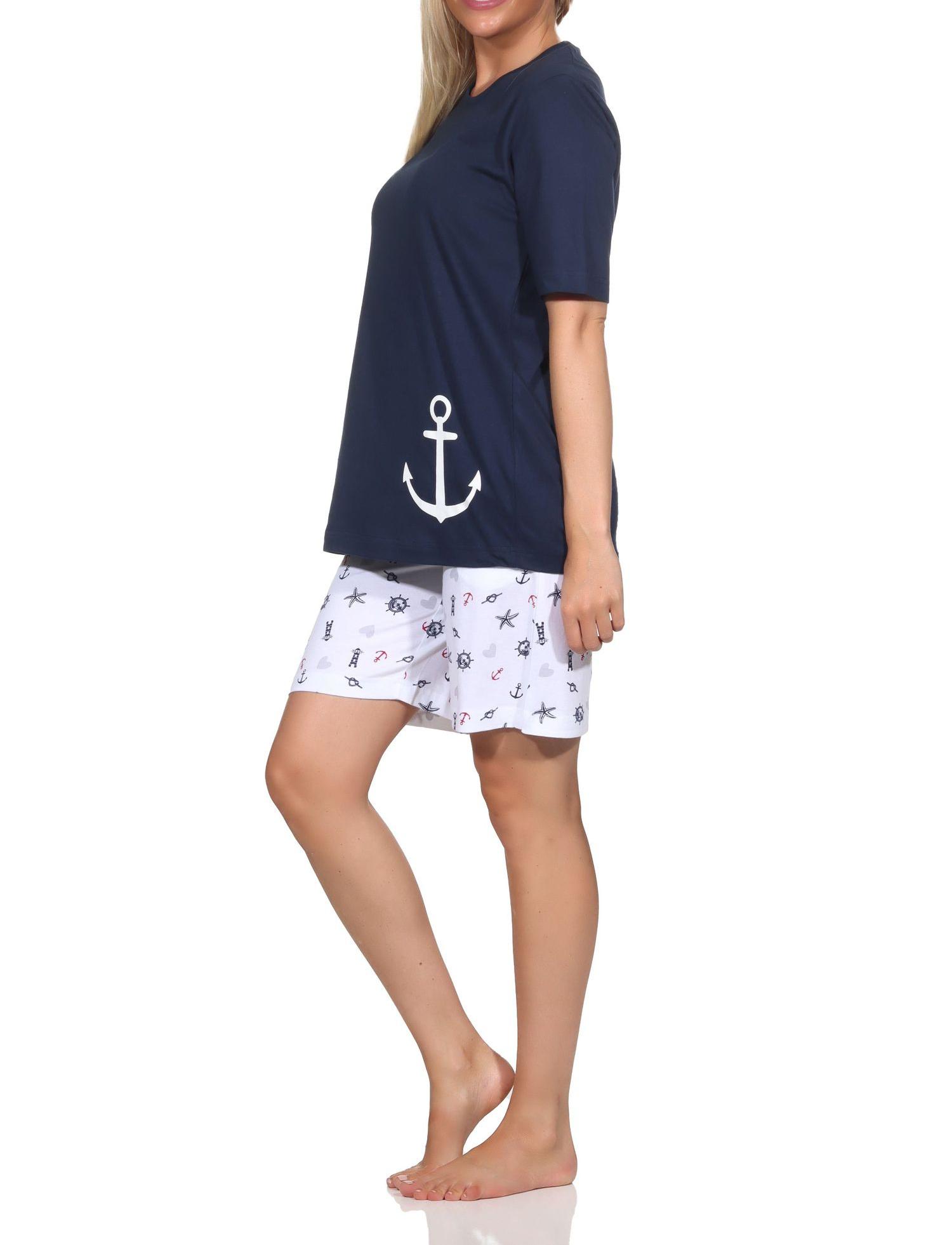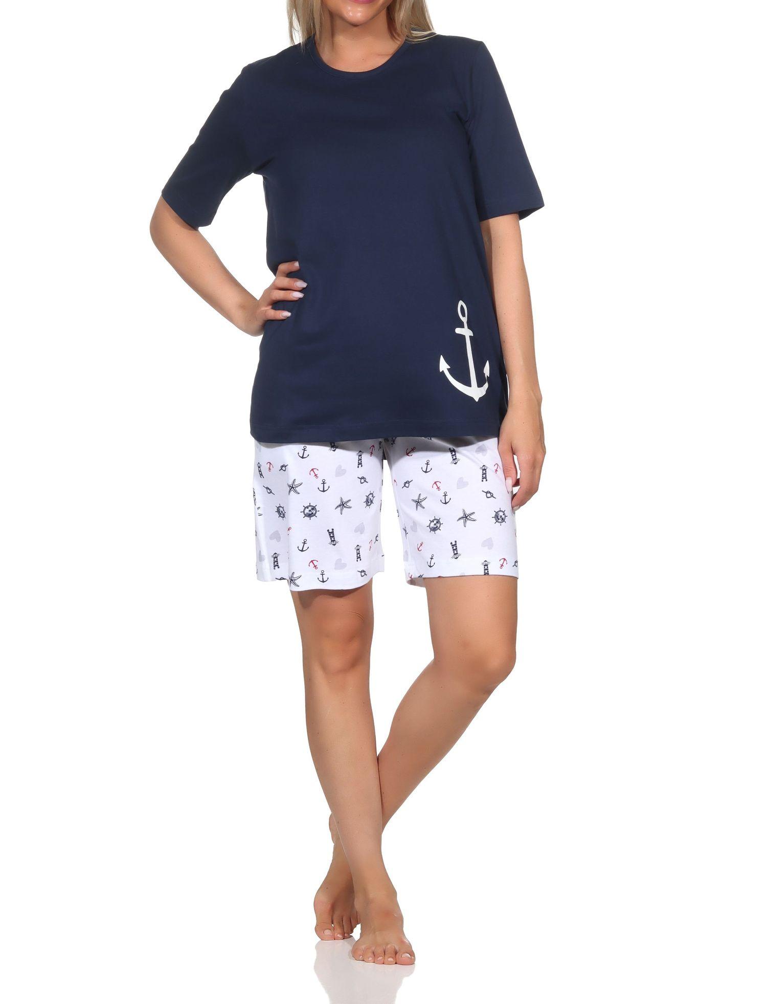 Normann Damen kurzarm Schlafanzug Shorty in maritimer Optik - auch in Übergrößen
