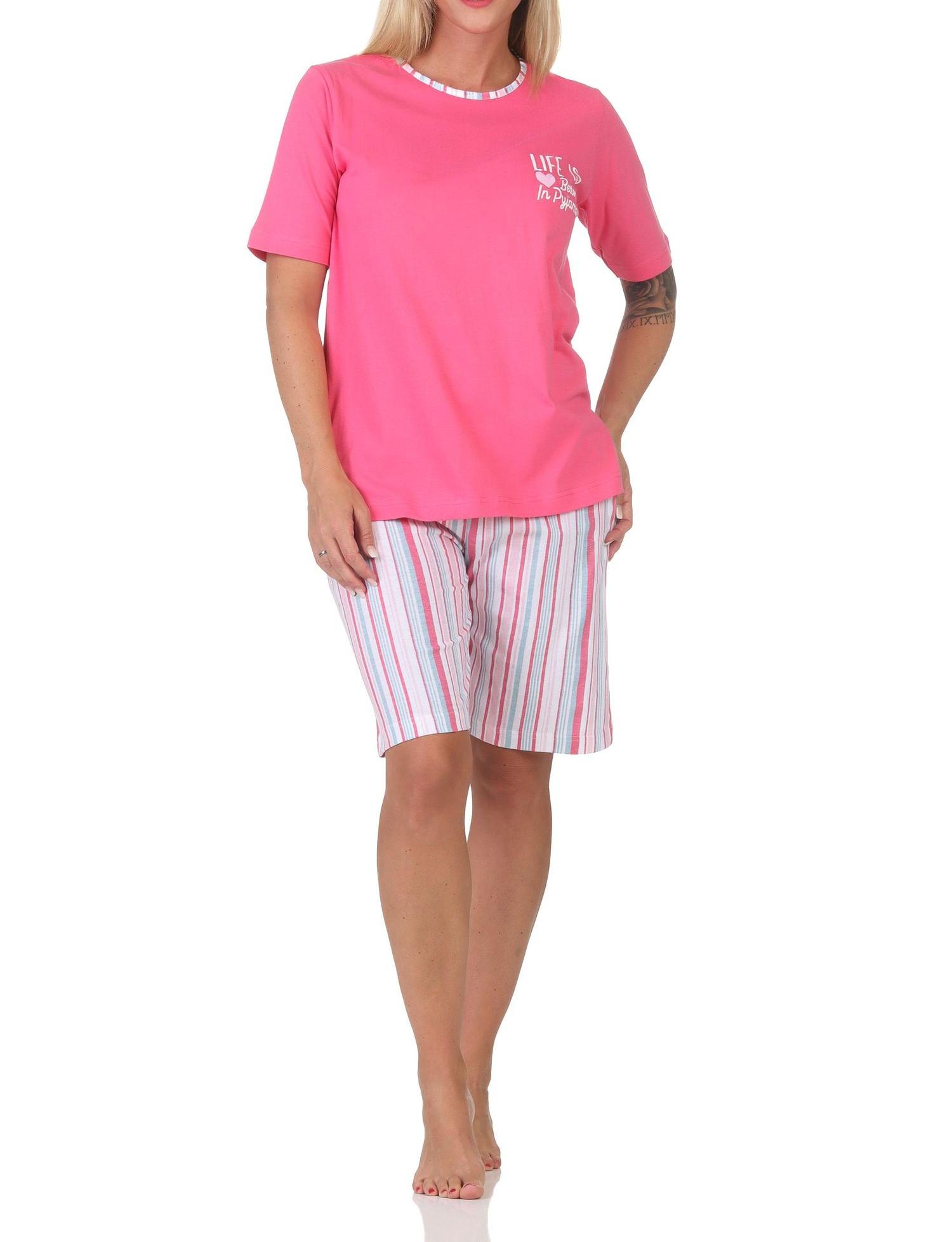 Normann Damen kurzarm Schlafanzug Shorty Pyjama in edler Streifenoptik – auch in Übergröße