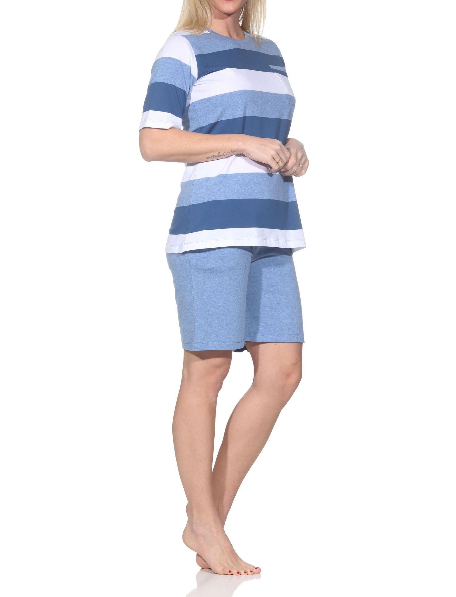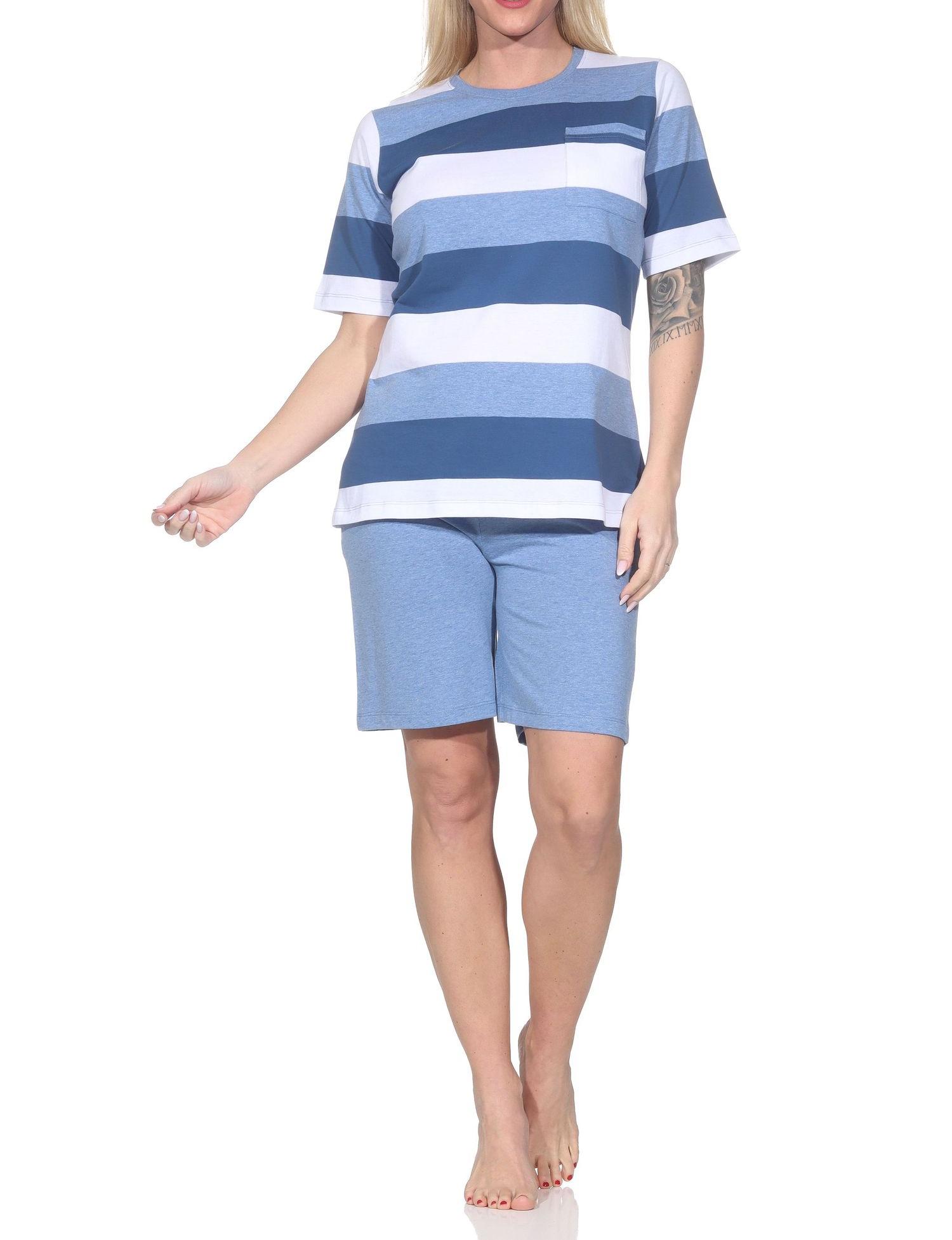 Normann Damen kurzarm Shorty Schlafanzug in Blockstreifenoptik - auch in Übergrössen