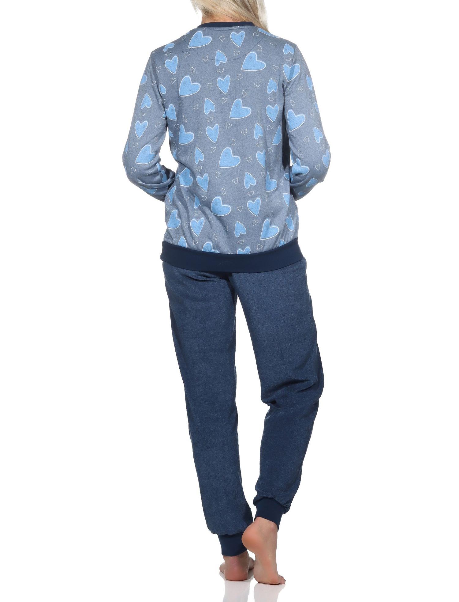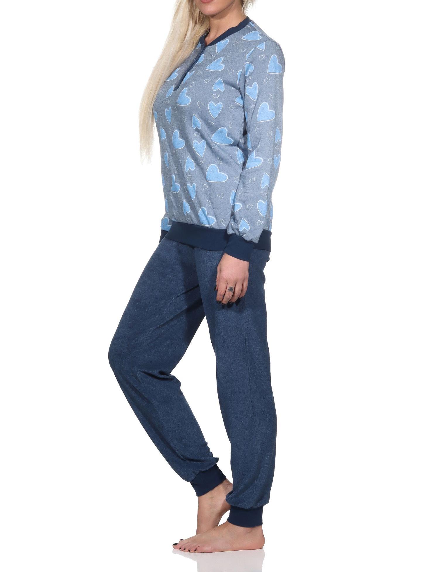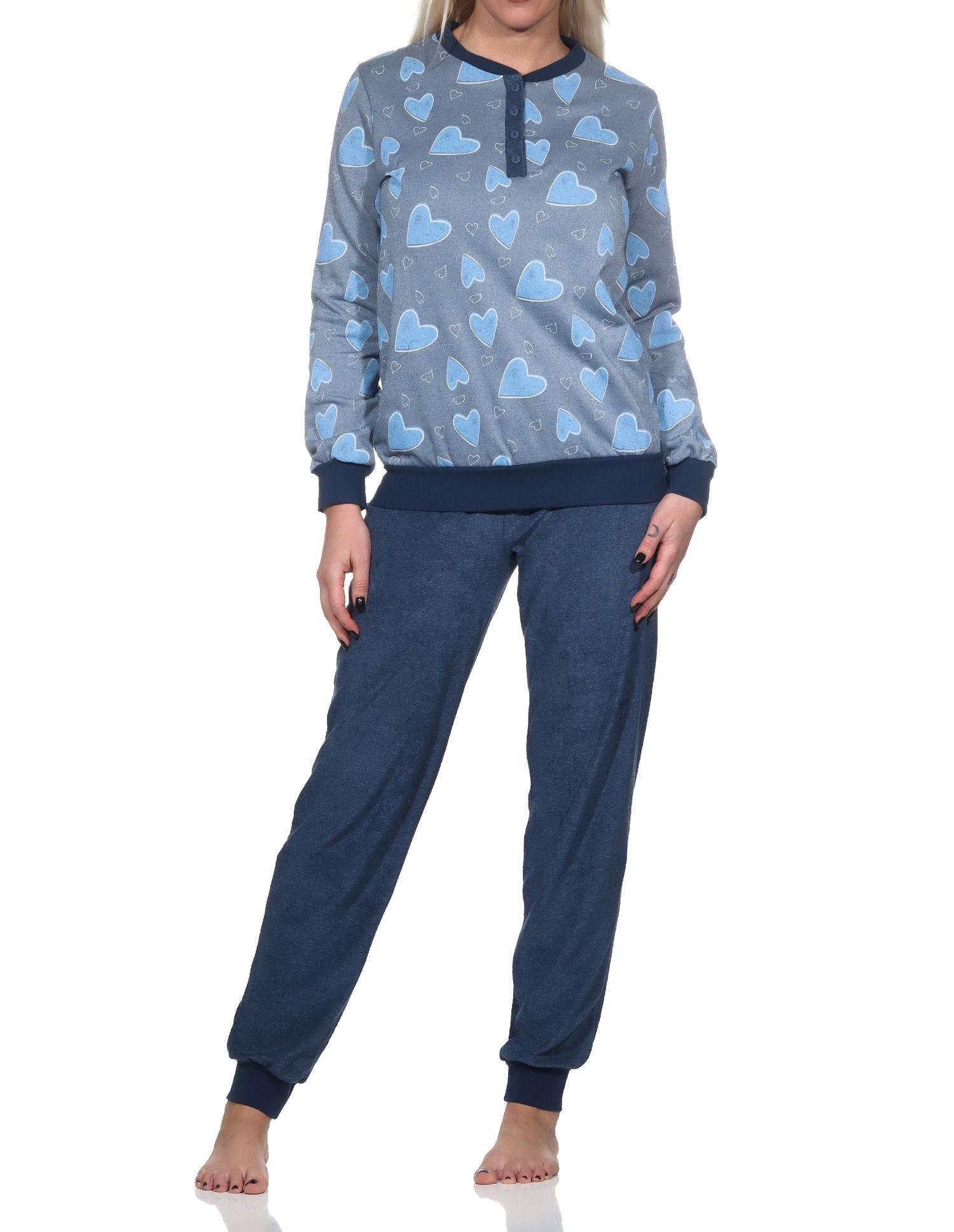 Normann Damen langarm Frottee Schlafanzug mit Bündchen in Herz Optik - auch in Übergrösse
