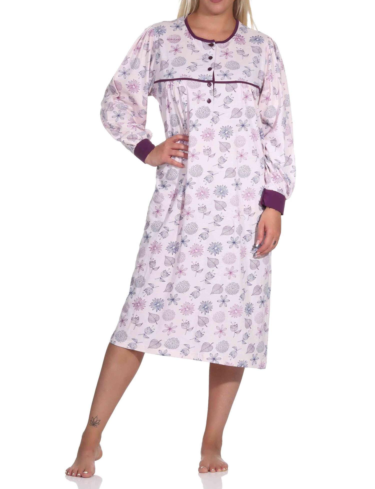 Normann Damen langarm Nachthemd im klassischen fraulichen Design mit Knopfleiste am Hals