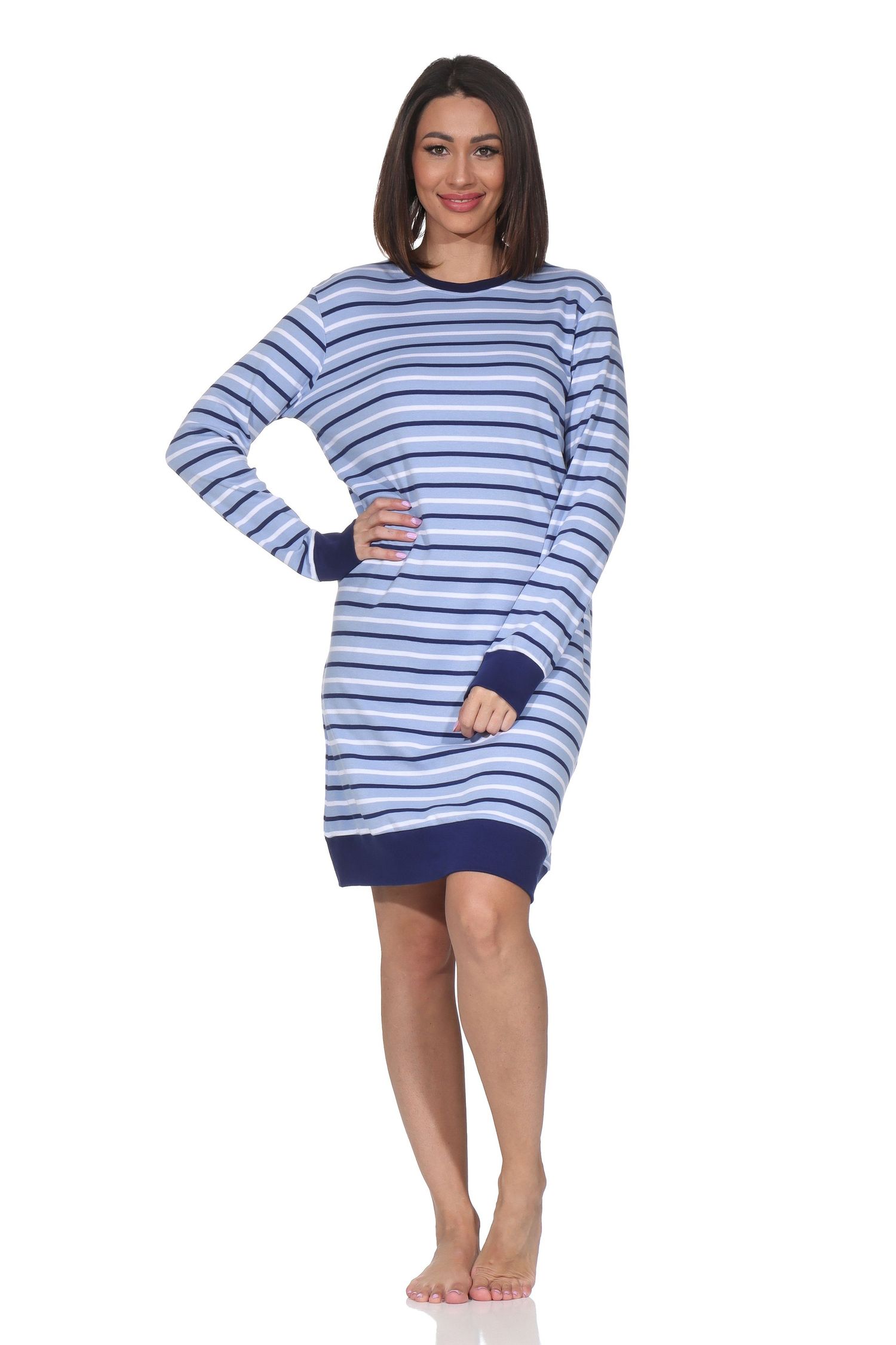 Kuschelig warme Nachthemden sind angesagt! Mögen Sie dazu noch Nachtwäsche in zeitlos eleganten Streifen Design, die eine schöne Optik haben? Dann ist dieses Damen langarm Nachthemd von Normann in Kuschel Interlock Qualität die perfekte Wahl, denn dieses Sleepshirt hat eine wunderschöne gestreifte Optik, ist warm und kann sowohl am Tag als Homewear oder auch in der Nacht getragen werden. Darüber hinaus haben Kuschel Interlock Nachthemden diese Eigenschaften: