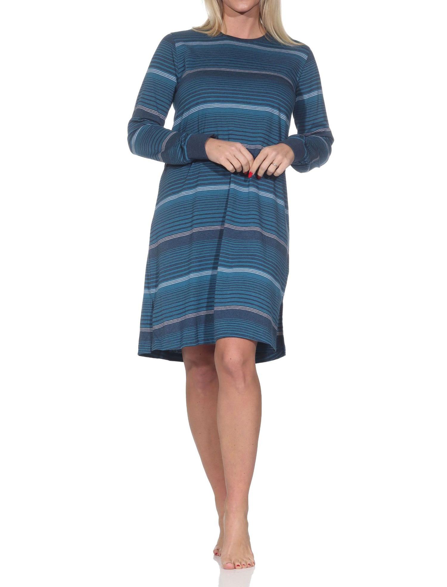 Normann Damen langarm Nachthemd mit Bündchen in Streifenoptik - auch in Übergrössen