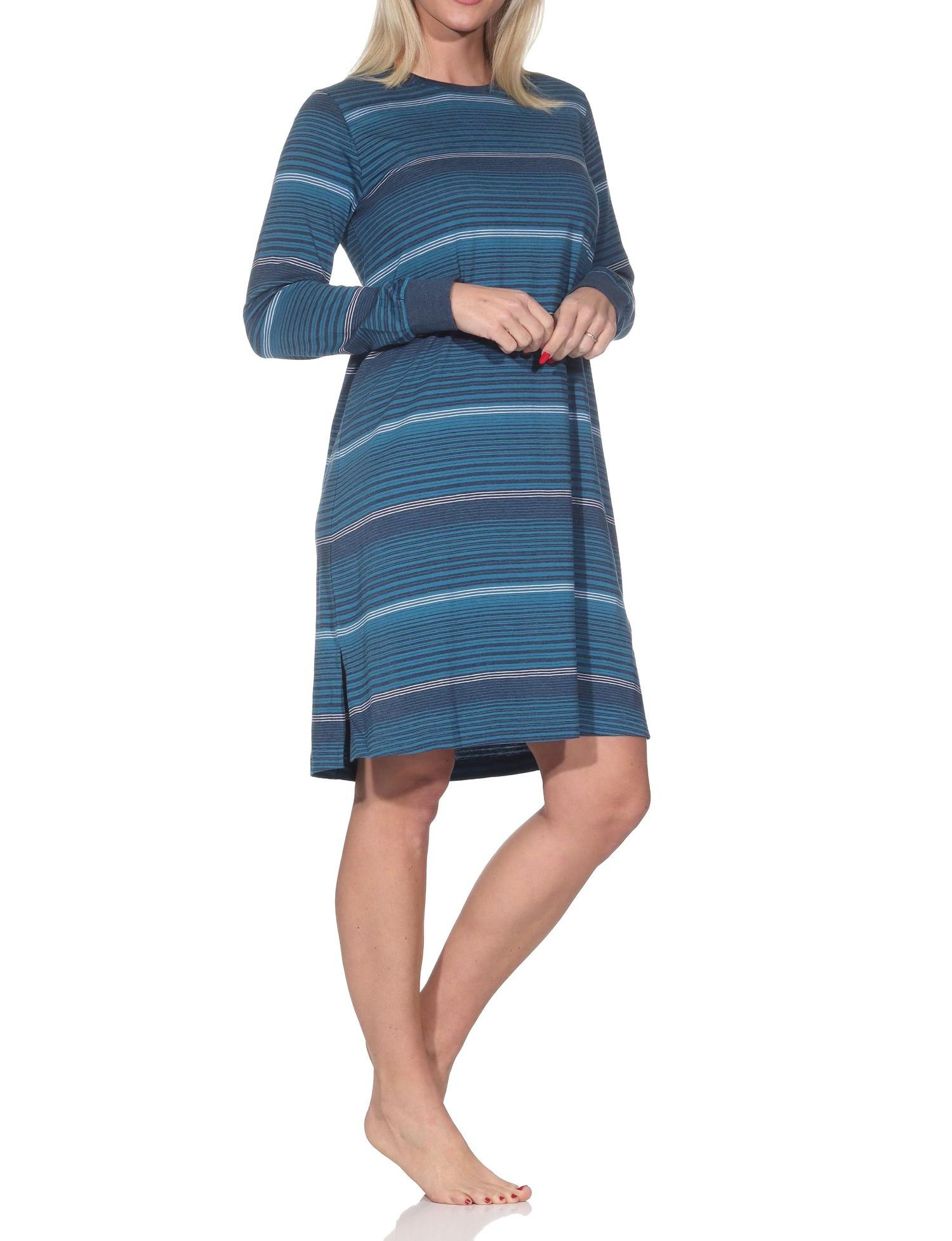 - WUNDERSCHÖNE GARNGEFÄRBTE STREIFEN OPTIK: Langarm Nachthemd mit Bündchen in eleganter Streifen-Optik = immer gut gekleidet, egal ob am Tag als Homewear oder in der Nacht als Nachtwäsche
