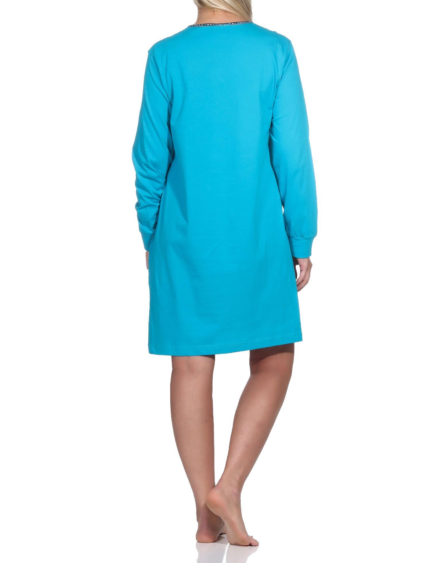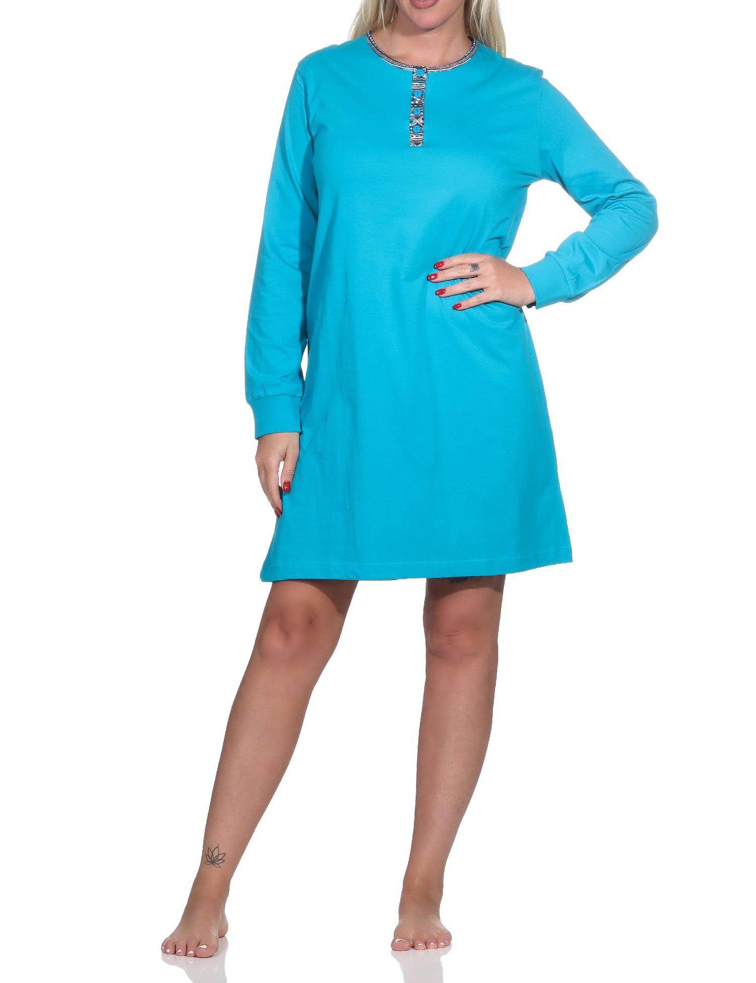Wunderschönes Damen Nachthemd langarm mit Bündchen am Ärmel in toller Farbigkeit im Ethnolook und mit Knopfleiste am Hals für einen angenehmen Tragekomfort.