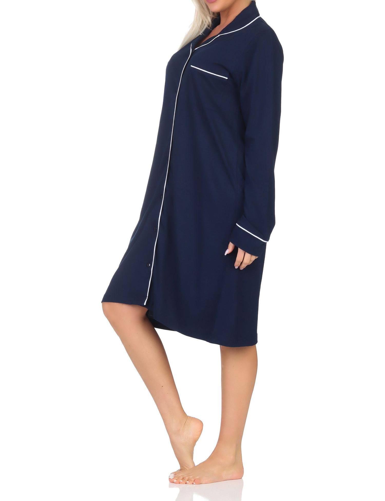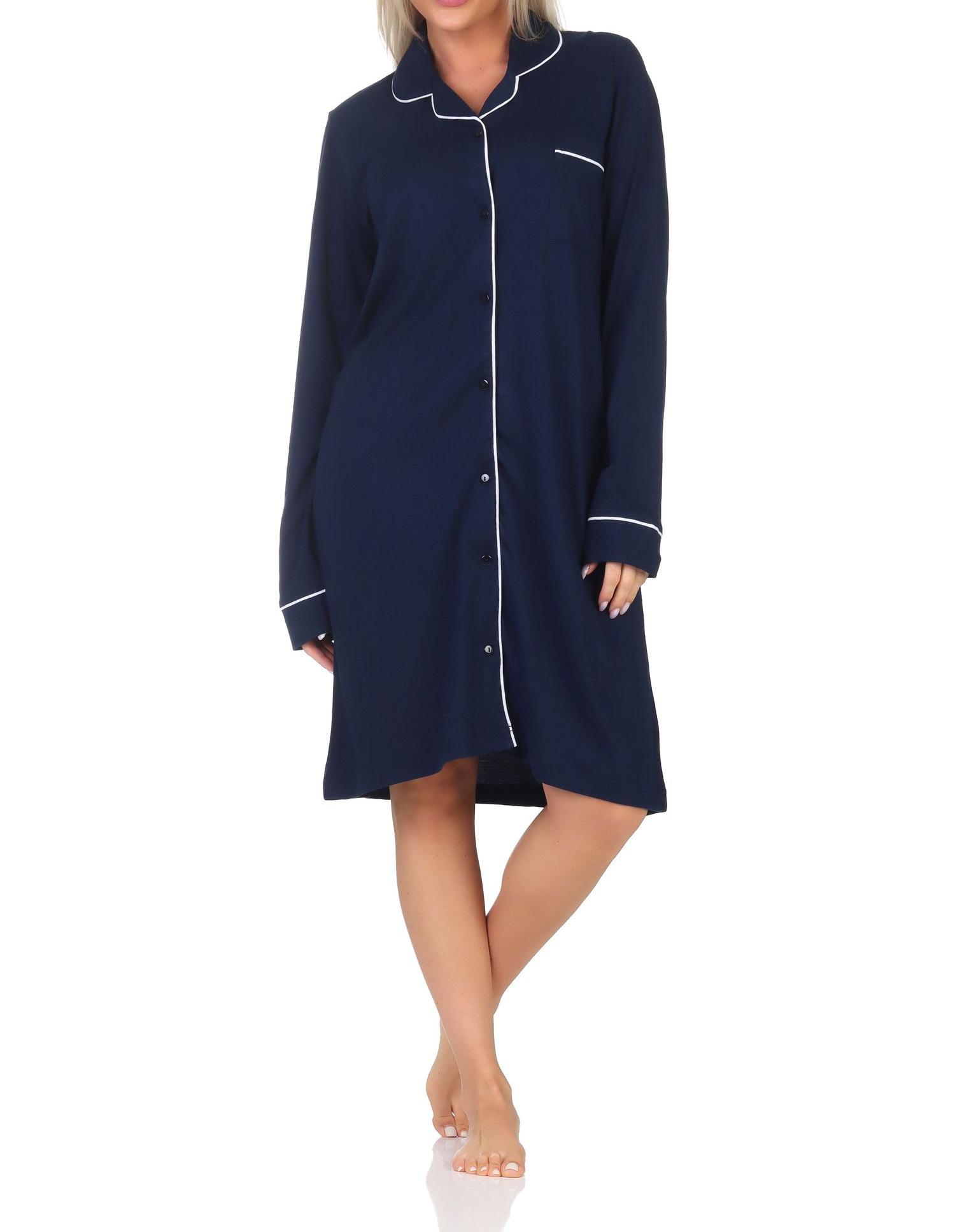 - VIELE DETAILS: Dieses Nachthemd hat viele Details wie Brusttasche, farblich abgesetztes Piping an Knopfleiste und Ärmel oder der klassische Reverskragen