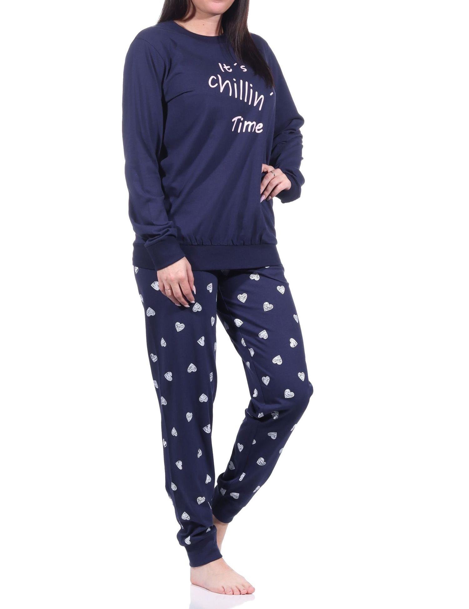 Normann Damen langarm Schlafanzug mit Bündchen in Herz Tupfen Punkte Optik