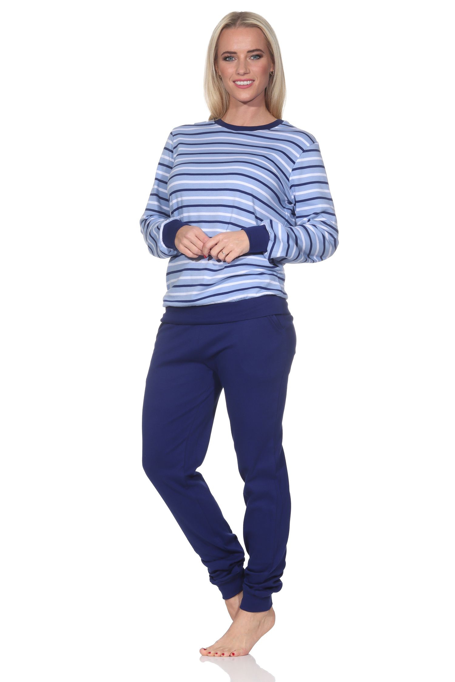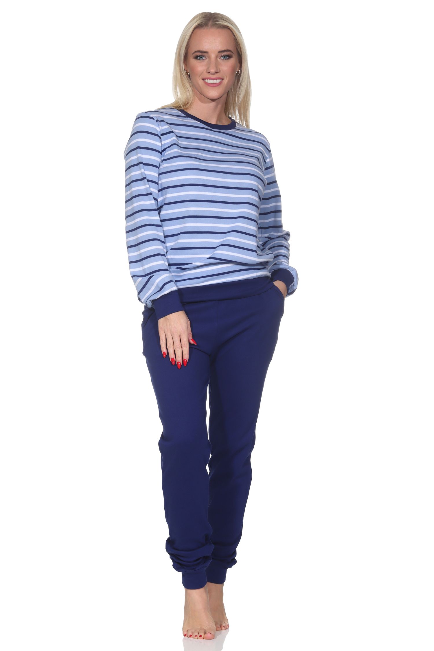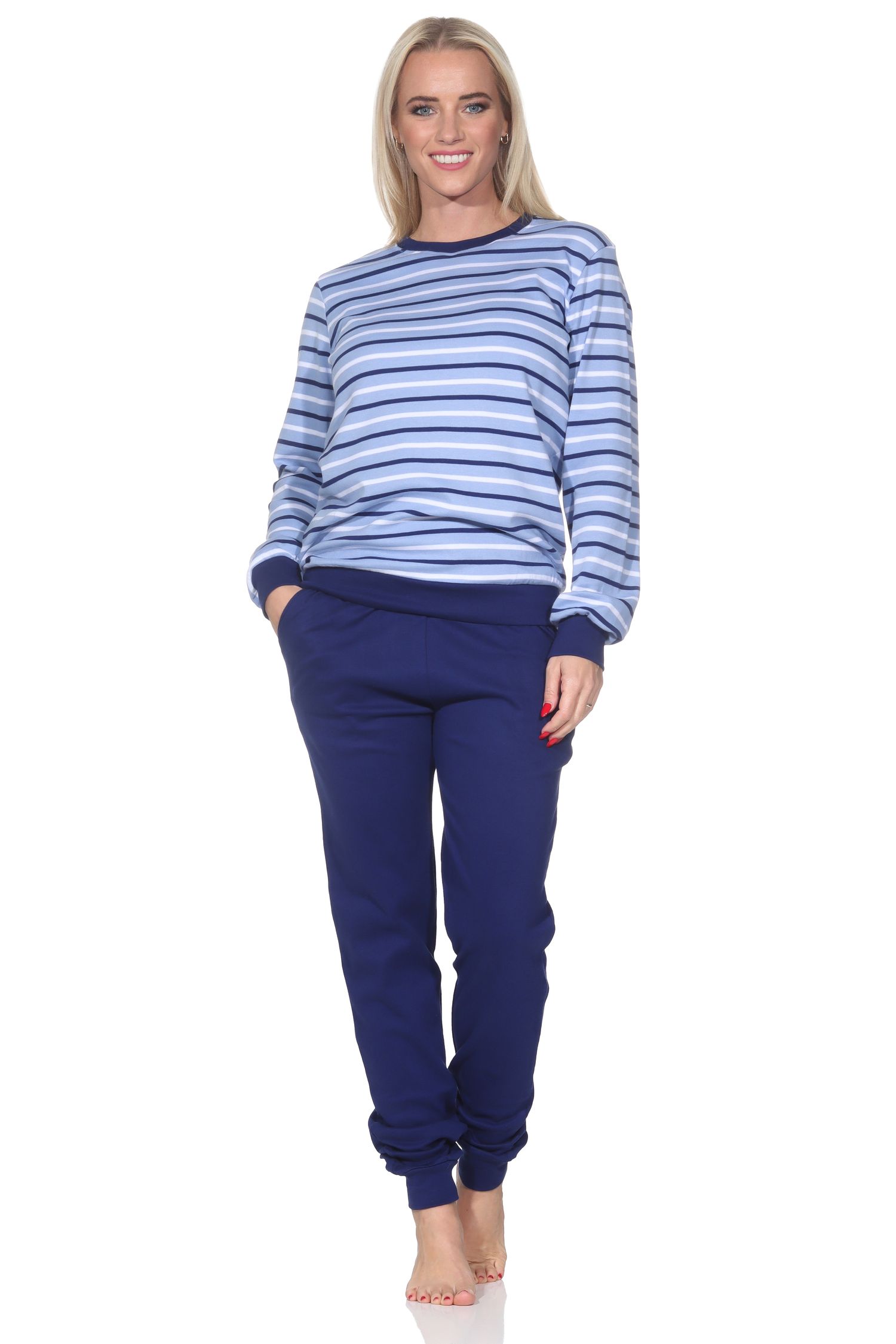 Normann Damen langarm Schlafanzug mit Bündchen in Kuschel Interlock Qualität