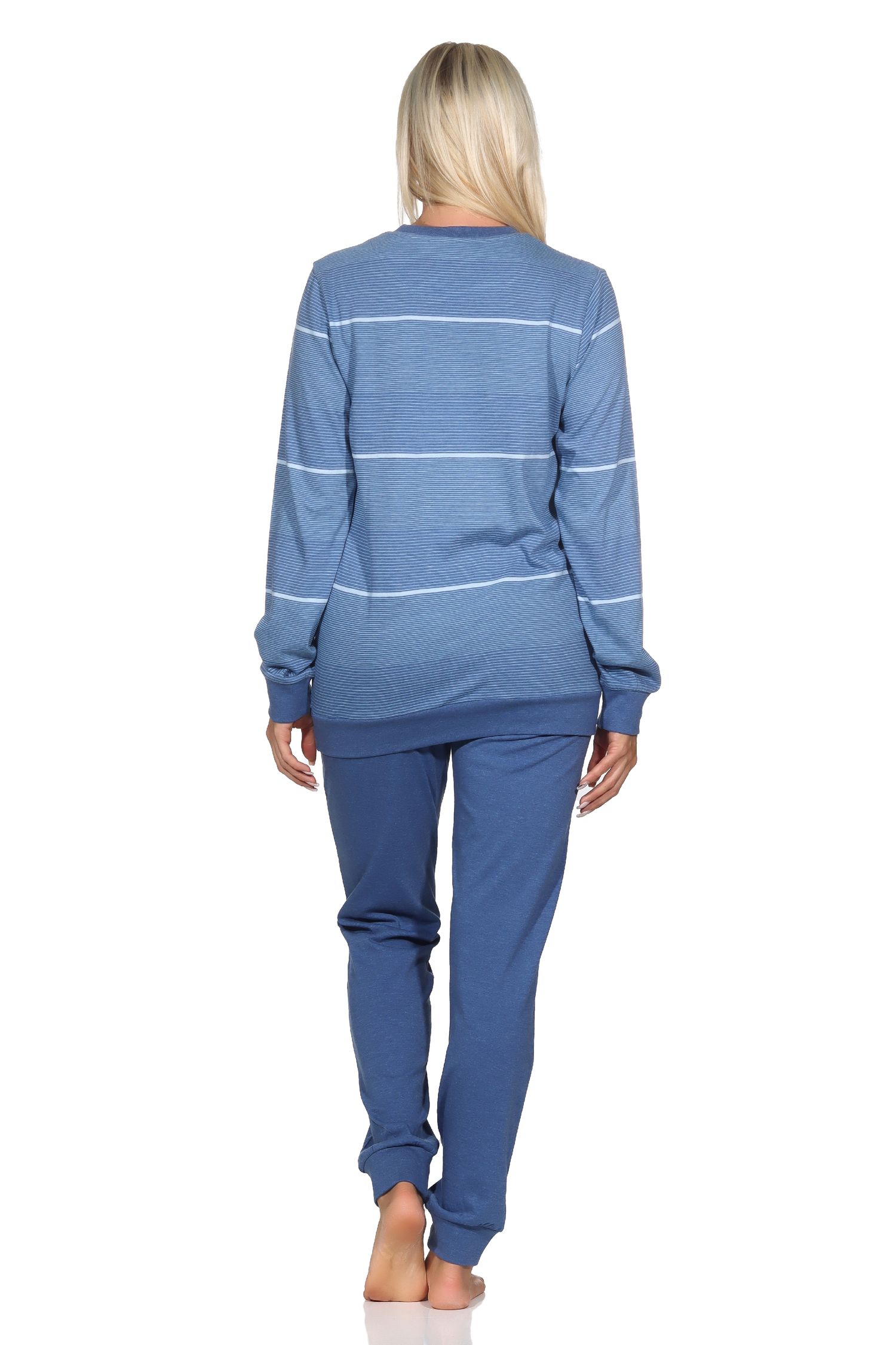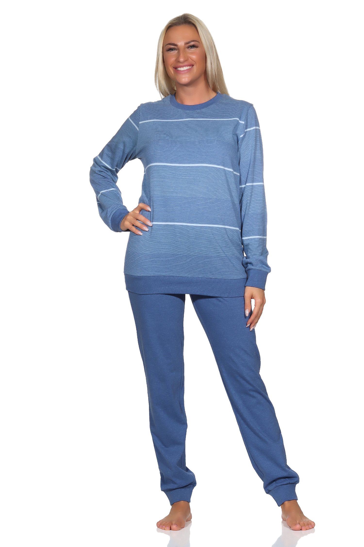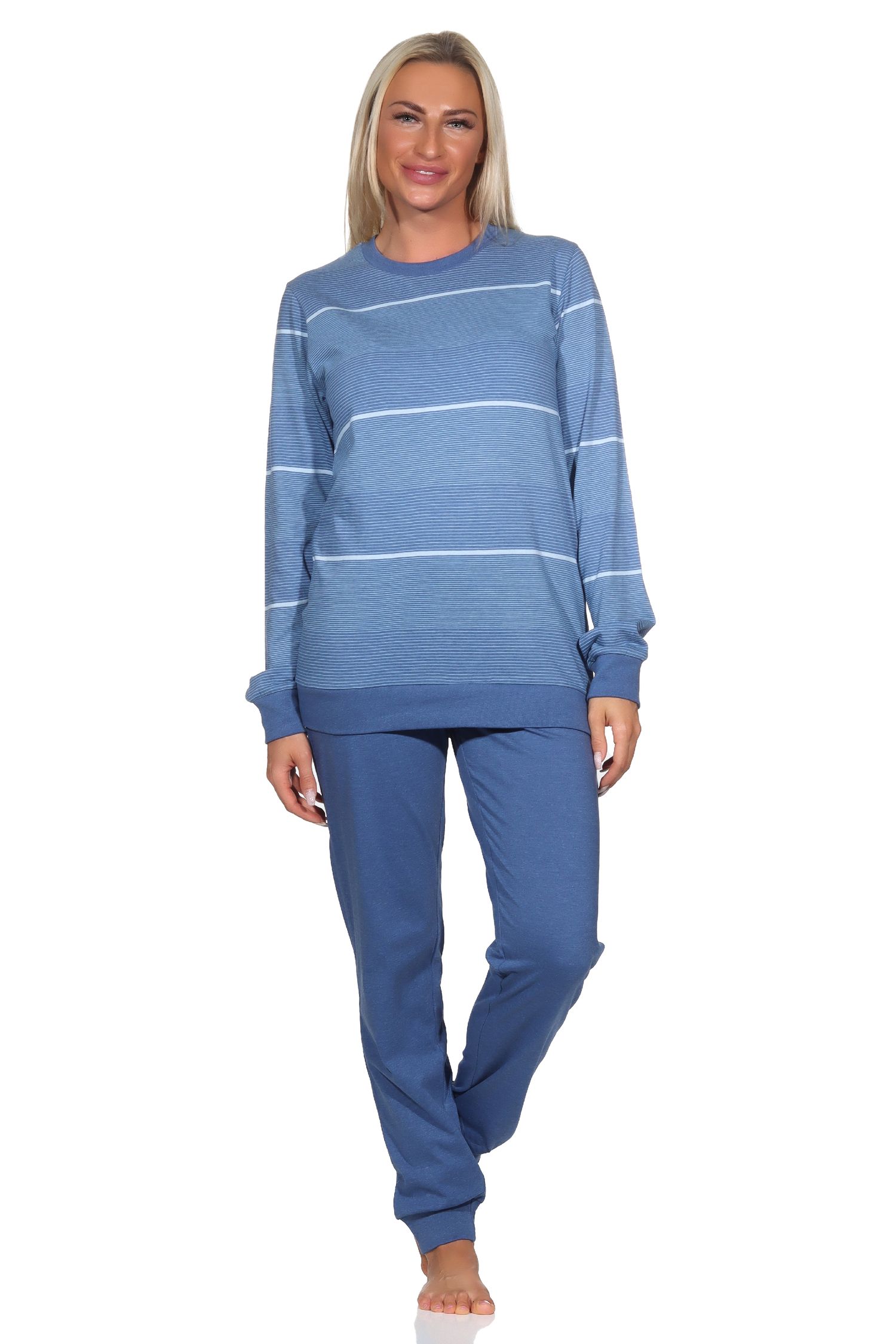 Normann Damen langarm Schlafanzug mit Bündchen in Streifenoptik - auch in Übergrössen