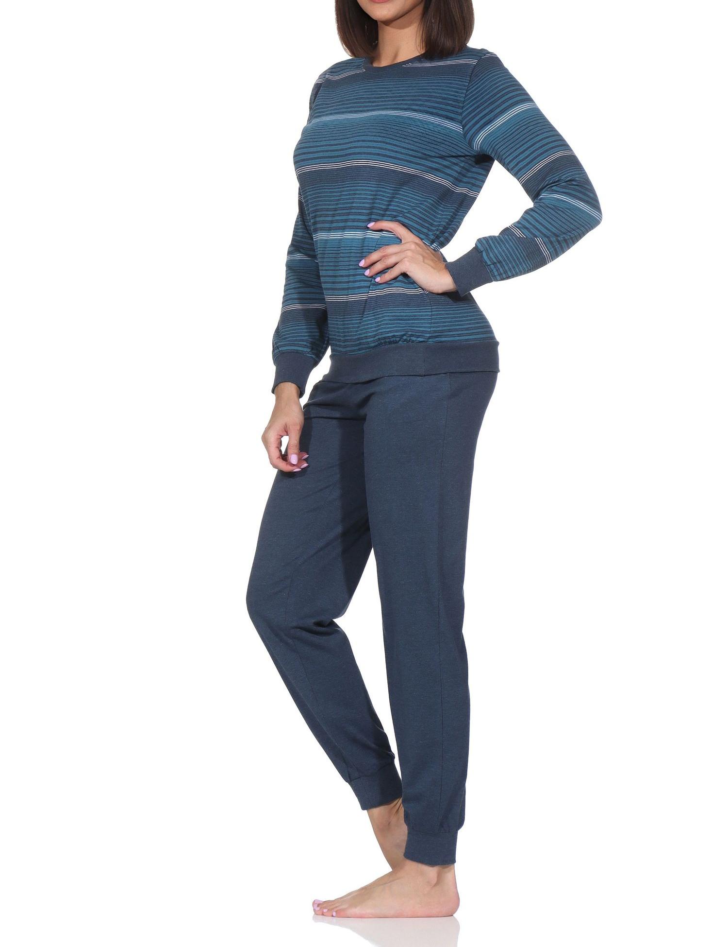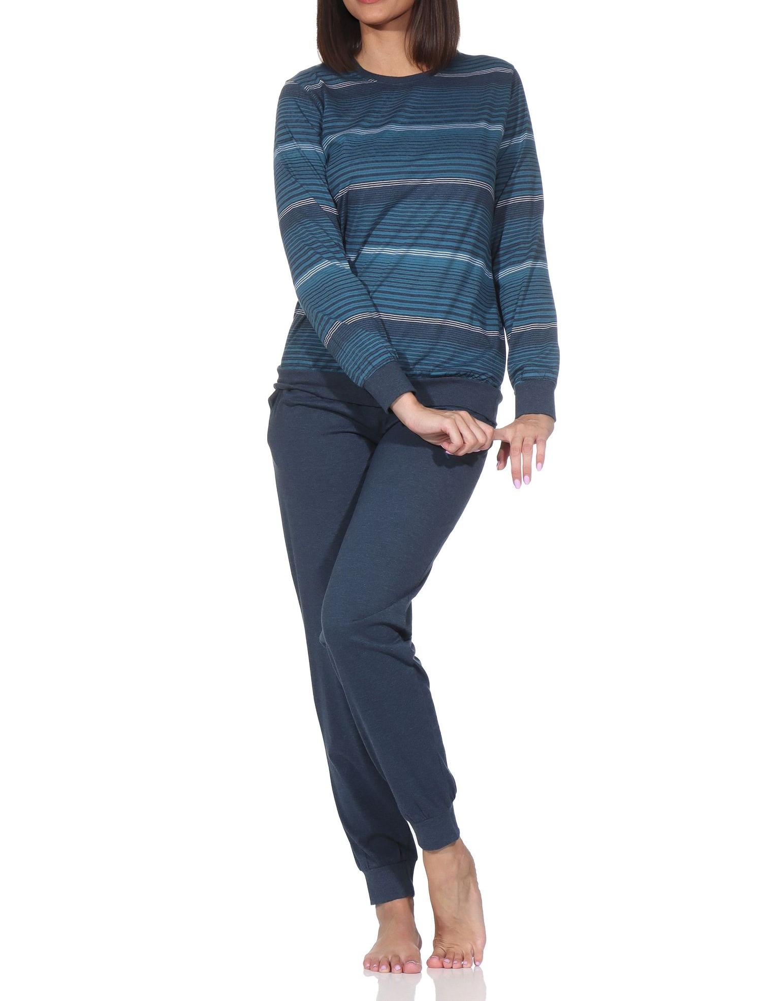 Normann Damen langarm Schlafanzug mit Bündchen in Streifenoptik - auch in Übergrössen