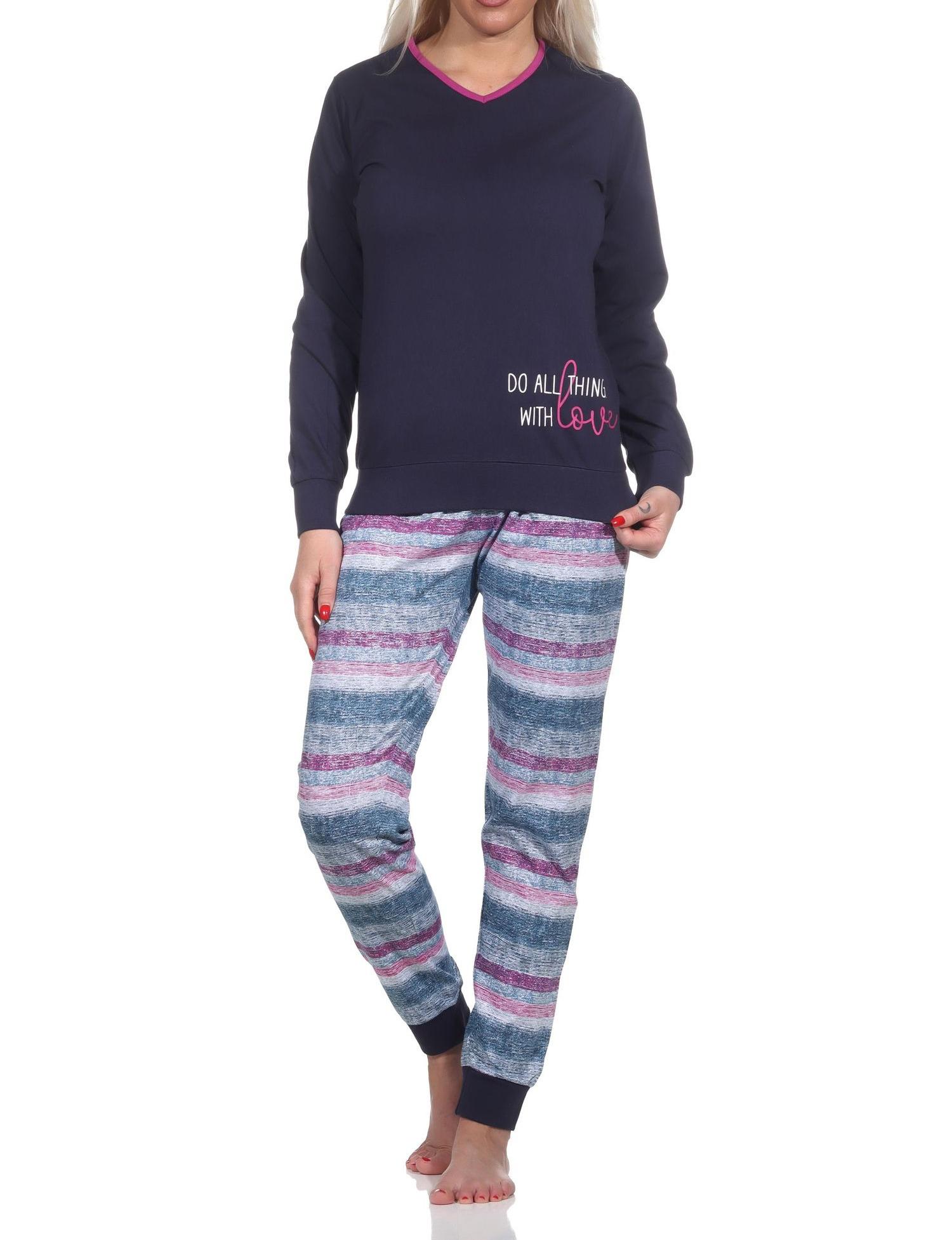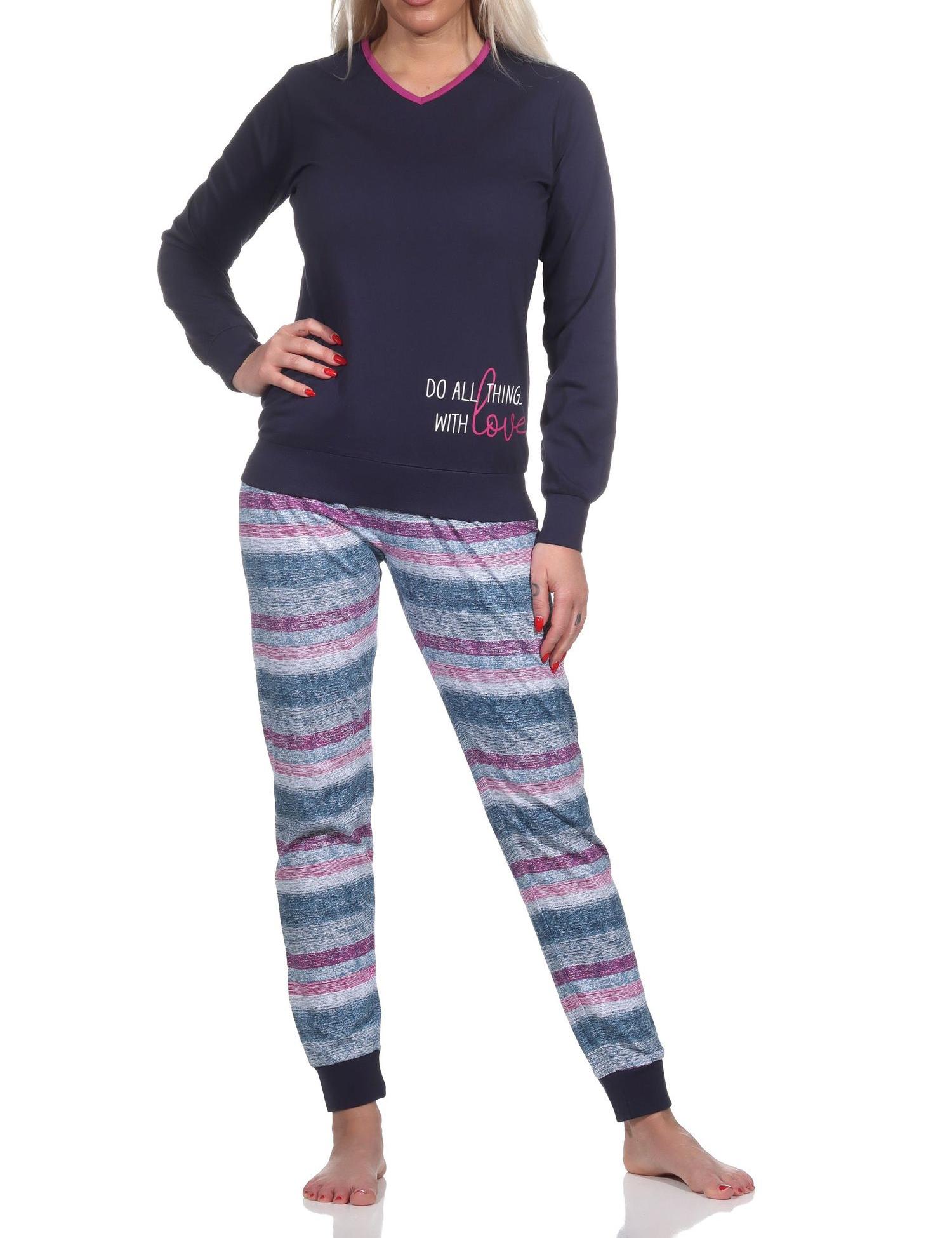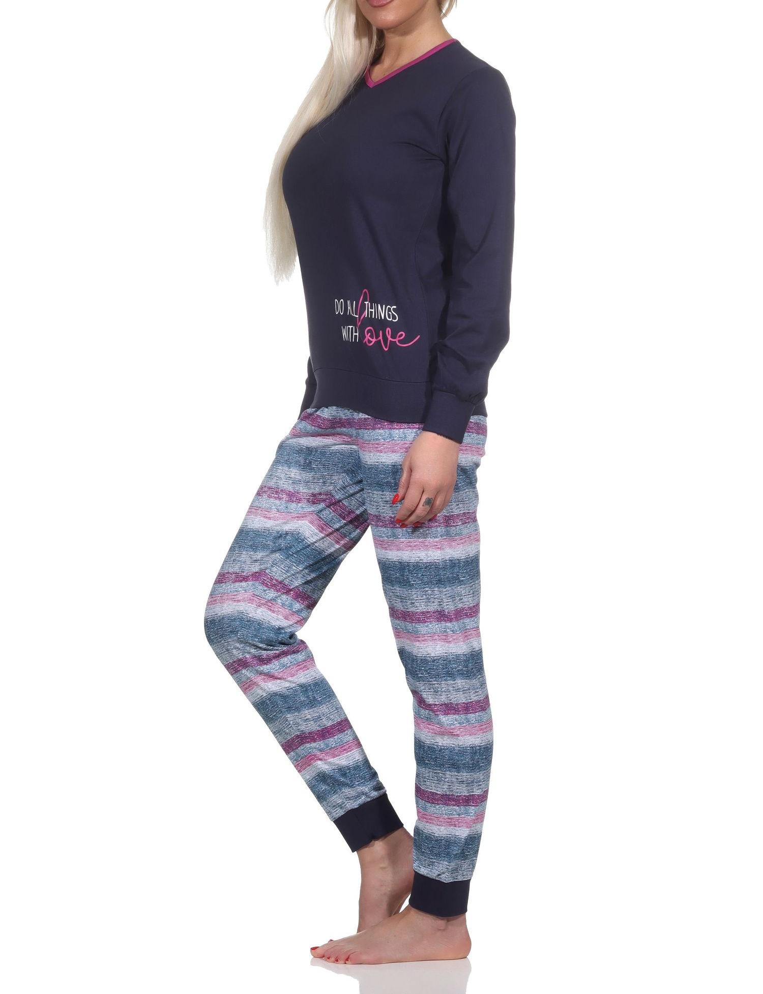 Normann Damen langarm Schlafanzug mit Bündchen Pyjama in wunderschöner Streifenoptik